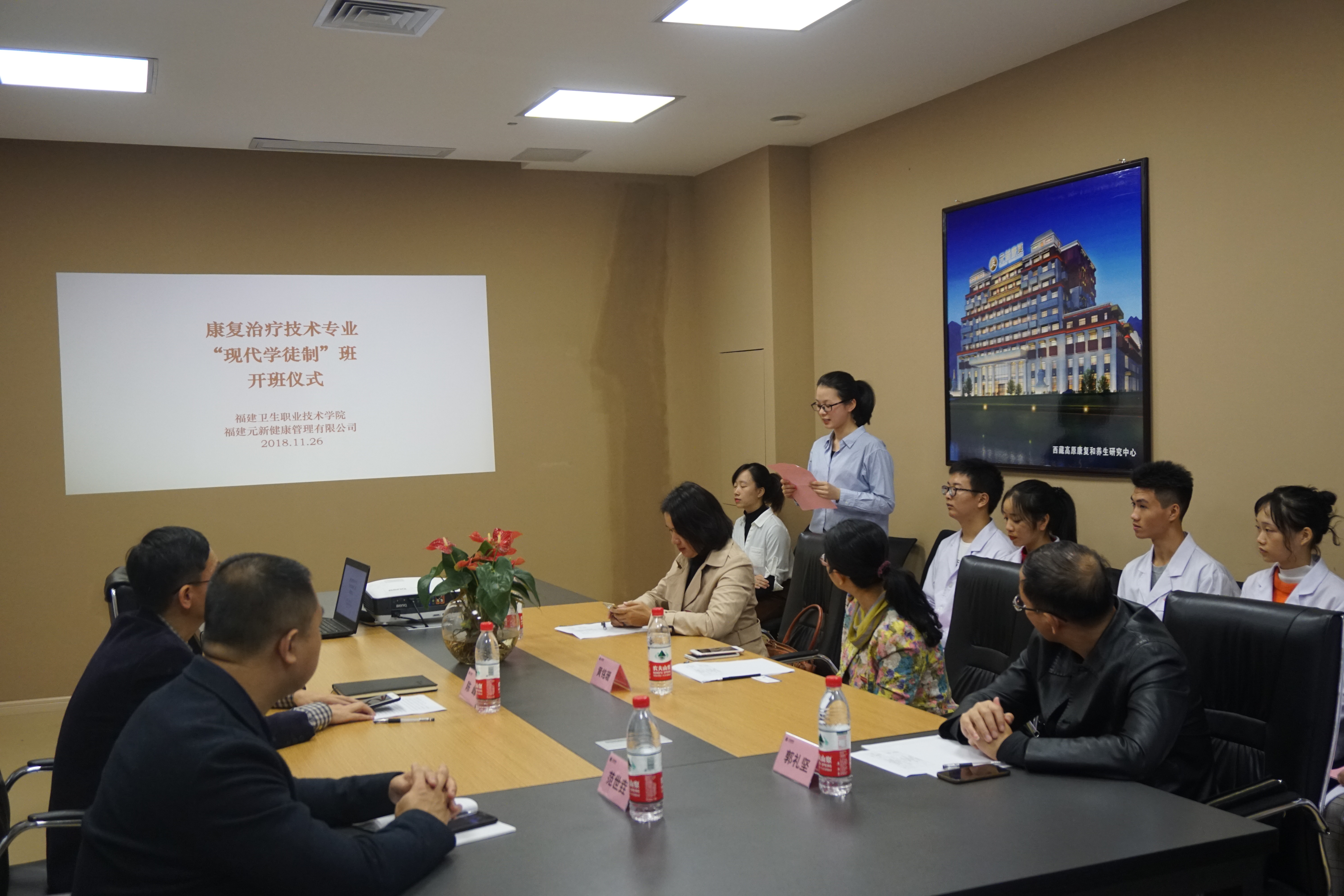 11月26日,福建衛(wèi)生職業(yè)技術(shù)學(xué)院與福建元新健康管理有限公司聯(lián)合開(kāi)辦的2017級(jí)康復(fù)治療技術(shù)“學(xué)徒制”班開(kāi)班儀式暨“拜師儀式”在福建元新健康管理有限公司舉行。我院黃銘珊副院長(zhǎng)、教務(wù)處朱扶蓉處長(zhǎng)、臨床醫(yī)學(xué)系郭禮堅(jiān)主任、福建元新健康管理公司陳鋒總裁、醫(yī)務(wù)部的范世垚主任、企業(yè)導(dǎo)師團(tuán)隊(duì)、我院康復(fù)教研室全體教師以及17康復(fù)治療技術(shù)301班全體同學(xué)共同出席了本次 開(kāi)班儀式。