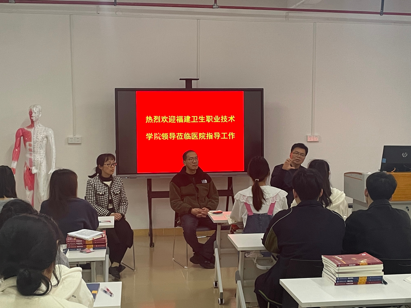 我校與安溪縣中醫(yī)院是首次合作辦學(xué),安溪縣中醫(yī)院科教科科長蘇全貴給學(xué)生講授《經(jīng)絡(luò)與腧穴》,我校一行結(jié)合課堂教學(xué)情況提出建議,并由專業(yè)老師開展教學(xué)培訓(xùn)。