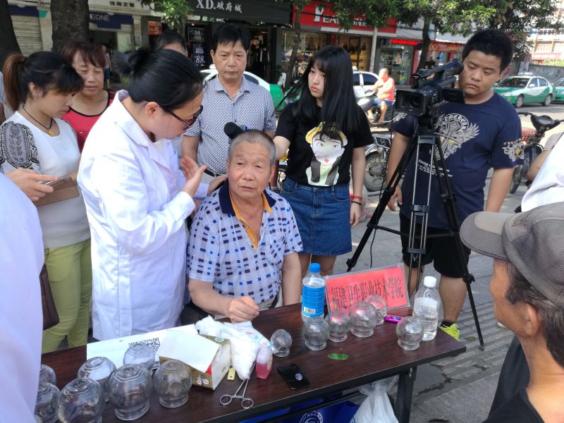 活動(dòng)開(kāi)始前,科普志愿者們?cè)诶蠋煹闹笇?dǎo)幫助下提前布置場(chǎng)地、擺放器材等準(zhǔn)備工作,以最大的熱情迎接前來(lái)咨詢(xún)和檢查的市民。本次義診的內(nèi)容有拔罐、刮痧、保健按摩、口腔保健、血壓測(cè)量等。帶隊(duì)老師們用自己的專(zhuān)業(yè)知識(shí)為居民們提出的問(wèn)題進(jìn)行詳細(xì)解答,科普志愿者們?yōu)槭忻駛儨y(cè)量血壓,拔罐、刮痧、保健按摩等操作。本次科普活動(dòng)贏得了市民們的贊許,并紛紛對(duì)本校的老師同學(xué)豎起大拇指,閩侯電視臺(tái)的記者也對(duì)我系老師進(jìn)行了采訪。通過(guò)此次科普活動(dòng),不僅讓同學(xué)們得到了專(zhuān)業(yè)技能的鍛煉,同時(shí)也向市民展示了我院師生服務(wù)社會(huì)的良好風(fēng)采。