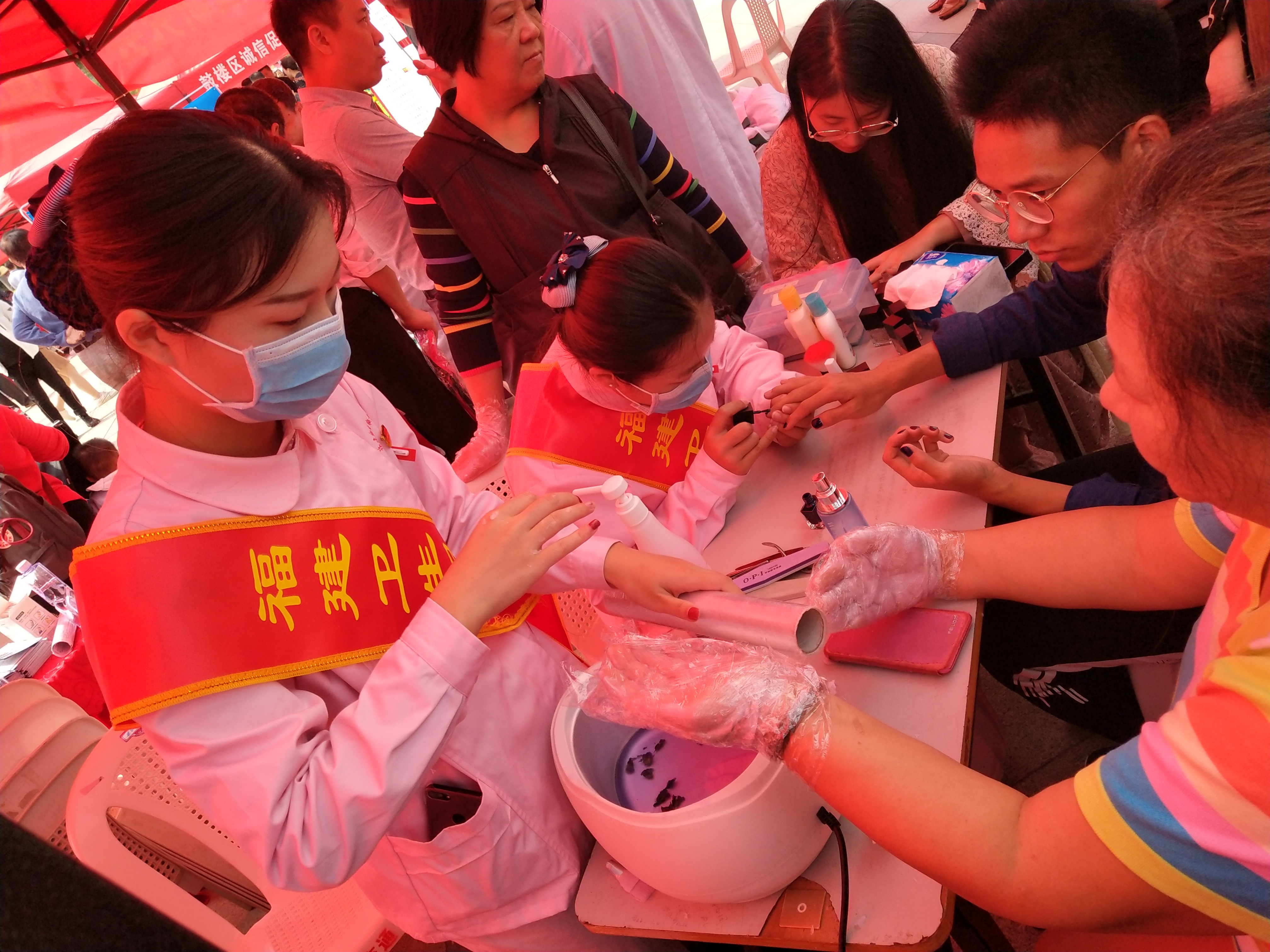 我校臨床醫(yī)學(xué)系的師生為現(xiàn)場(chǎng)市民提供推拿、拔罐、耳穴等醫(yī)療保健項(xiàng)目的服務(wù),健康管理系的師生負(fù)責(zé)提供蠟療護(hù)手、修甲美甲等體驗(yàn)項(xiàng)目,其他工作人員在現(xiàn)場(chǎng)分發(fā)有關(guān)頸椎保護(hù)操和推拿保健知識(shí)的宣傳單頁(yè),旨在讓大家了解一些日常自我保健知識(shí)和美甲護(hù)理知識(shí)。在我校師生提供服務(wù)的現(xiàn)場(chǎng)攤位處,許多市民排起了長(zhǎng)隊(duì),人頭攢動(dòng),熱鬧非凡。