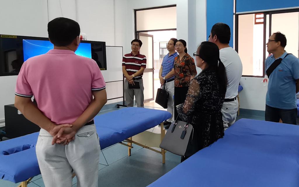 座談會(huì)后,來訪一行在副院長(zhǎng)黃銘珊及臨床醫(yī)學(xué)系相關(guān)人員的陪同下參觀了臨床醫(yī)學(xué)系實(shí)訓(xùn)中心。