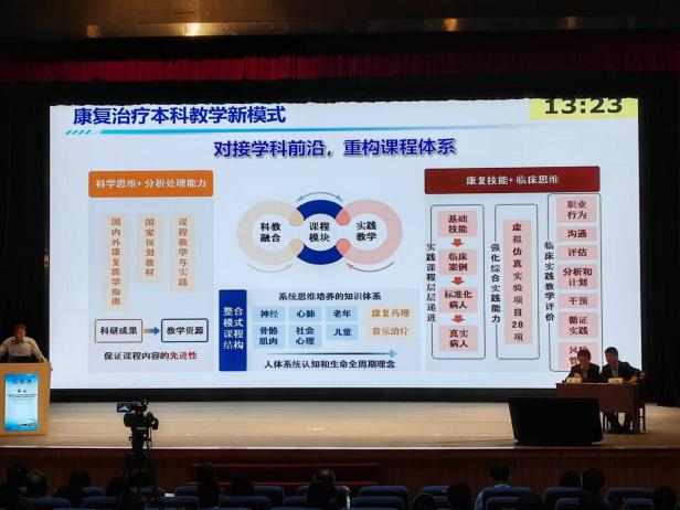 大會(huì)以“數(shù)據(jù)化、智能化、智慧化——構(gòu)建中國(guó)康復(fù)數(shù)字化教育新生態(tài)”為主題,涵蓋康復(fù)職業(yè)教育新發(fā)展、教師專(zhuān)業(yè)發(fā)展、數(shù)字化技術(shù)、專(zhuān)業(yè)課程建設(shè)、教科研能力等多個(gè)領(lǐng)域內(nèi)容。與會(huì)期間,教師們還觀摩了第五屆全國(guó)康復(fù)相關(guān)專(zhuān)業(yè)學(xué)生技能比賽,來(lái)自全國(guó)百余所本科院校共72支隊(duì)伍參加了本次決賽,選手們從問(wèn)診、康復(fù)評(píng)定、治療、提問(wèn)四個(gè)環(huán)節(jié)展示了各自的水平和風(fēng)采。
