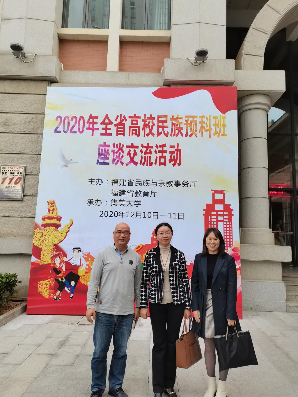 為認(rèn)真貫徹落實黨的十九屆五中全會精神,圍繞鑄牢中華民族共同體意識主線,不斷增強(qiáng)各族學(xué)生對偉大祖國、中華民族、中華文化、中國共產(chǎn)黨、中國特色社會主義的認(rèn)同,進(jìn)一步總結(jié)交流我省高校舉辦民族班好的經(jīng)驗和做法,12月10日至11日,學(xué)院副院長黃銘珊,醫(yī)學(xué)系黨總支書記邱滾忠和輔導(dǎo)員高長花一同前往集美大學(xué)開展全省民族預(yù)科班座談交流活動?;顒佑筛=ㄊ∶褡迮c宗教事務(wù)廳、福建省教育廳主辦,集美大學(xué)承辦,來自福建省民族與宗教事務(wù)廳、教育廳,福建農(nóng)林大學(xué)、集美大學(xué)、福建工程學(xué)院、閩江學(xué)院、寧德師范學(xué)院以及我校6所高校分管民族預(yù)科班、民族班工作的相關(guān)領(lǐng)導(dǎo)、老師齊聚一堂,總結(jié)交流我省高校舉辦民族預(yù)科班、民族班的經(jīng)驗做法。