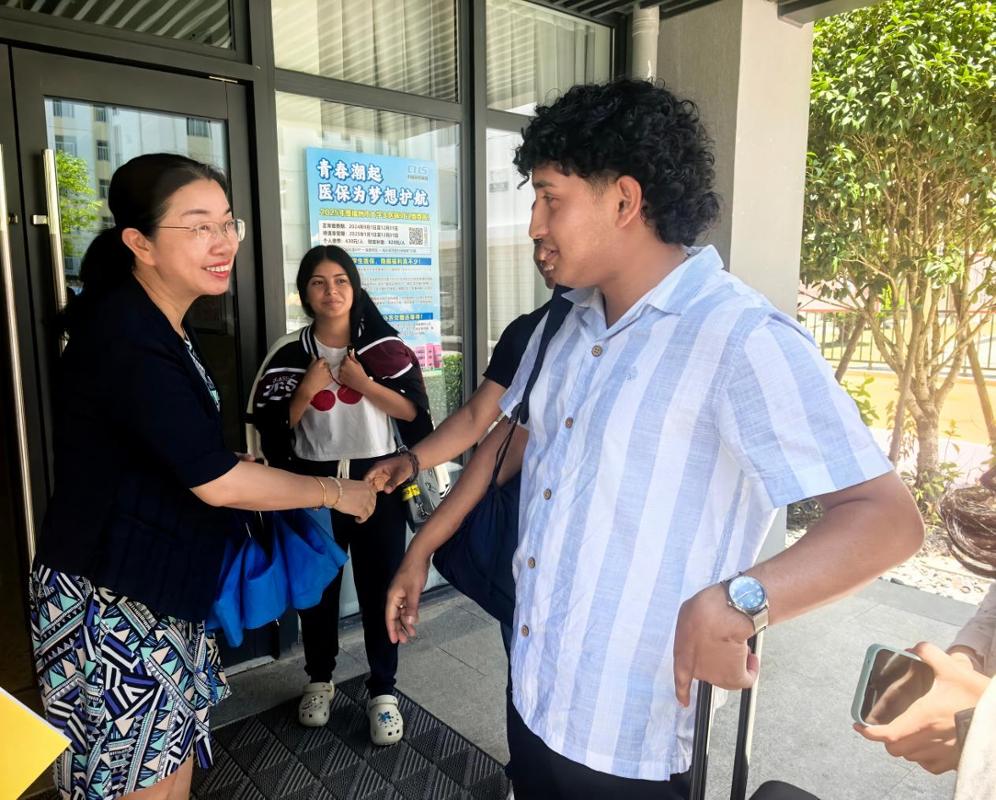 報(bào)到當(dāng)天,黃銘珊副校長(zhǎng)在宿舍歡迎留學(xué)生的到來(lái),對(duì)他們?nèi)胄O嚓P(guān)工作進(jìn)行悉心指導(dǎo)。醫(yī)學(xué)院相關(guān)工作人員陪同,為留學(xué)生提供了熱情周到的服務(wù)。從入學(xué)注冊(cè)、校園導(dǎo)覽到辦理校園卡、電話卡、銀行卡等,師生耐心解答每一個(gè)問(wèn)題,幫助留學(xué)生迅速適應(yīng)新環(huán)境。這些懷揣求學(xué)夢(mèng)想的青年跨越重洋,為初秋的校園注入了鮮活的國(guó)際元素,也深切感受到學(xué)校的溫暖與包容。