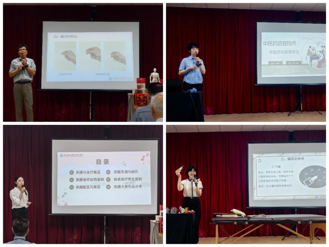 之后,主辦雙方開展七場“中醫(yī)藥適宜技術(shù)系列講座”。福建衛(wèi)生職業(yè)技術(shù)學院教師主講了《針灸技術(shù)》《艾灸技術(shù)》《拔罐技術(shù)》《刮痧技術(shù)》《中醫(yī)藥與美容養(yǎng)生》《藥膳與食療》和《膝關(guān)節(jié)康復功法》等講座,講座圍繞針灸、艾灸、拔罐、刮痧、中醫(yī)美容養(yǎng)生等傳統(tǒng)技藝,并融入藥膳食療、全身肢體康復功法等生活化養(yǎng)生內(nèi)容,吸引大批當?shù)孛癖娂爸嗅t(yī)從業(yè)者踴躍參與,現(xiàn)場互動熱烈,反響積極,充分展現(xiàn)了中醫(yī)藥文化的獨特魅力與實用價值。