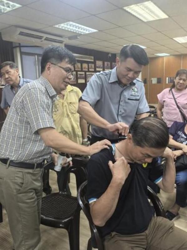 座談會后,代表團(tuán)為峇株巴轄當(dāng)?shù)孛癖娂爸嗅t(yī)從業(yè)者舉辦了中醫(yī)適宜技術(shù)實(shí)用技能培訓(xùn),內(nèi)容包括針刺、艾灸、拔罐、刮痧及關(guān)節(jié)康復(fù)功法等康復(fù)治療技術(shù)實(shí)操培訓(xùn),以及中醫(yī)藥美容技術(shù)與藥膳制作技術(shù)理論教學(xué)指導(dǎo)。培訓(xùn)采取“理論+實(shí)操”相結(jié)合的方式,并融入中方“三伏灸”、“八段錦”等成功案例及馬來西亞基層醫(yī)療實(shí)際需求,增強(qiáng)培訓(xùn)的實(shí)用性與針對性。現(xiàn)場還捐贈(zèng)了針灸包、刮痧板、艾條和針灸銅人模型等專業(yè)教具與康復(fù)器械,參訓(xùn)人員反響熱烈,廣泛認(rèn)可培訓(xùn)內(nèi)容的價(jià)值與中醫(yī)藥文化的獨(dú)特魅力。