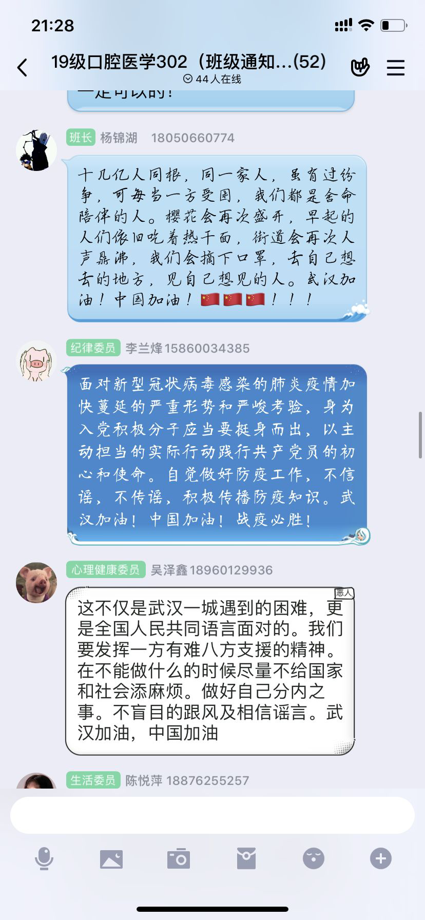 線上團日圍繞學習由我系17臨床303班王繼鑒同學解讀的主題ppt、觀看疫情防控宣傳視頻、閱讀我校疫情防控相關(guān)文件等內(nèi)容展開。最后全體團員同學紛紛線上留言,表達自己此次團日活動的感受