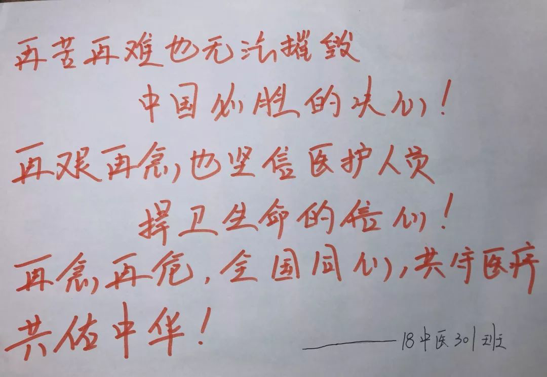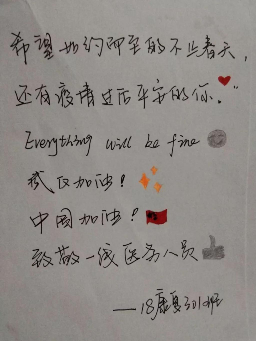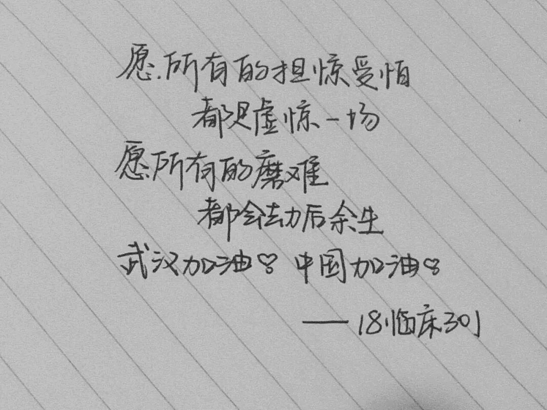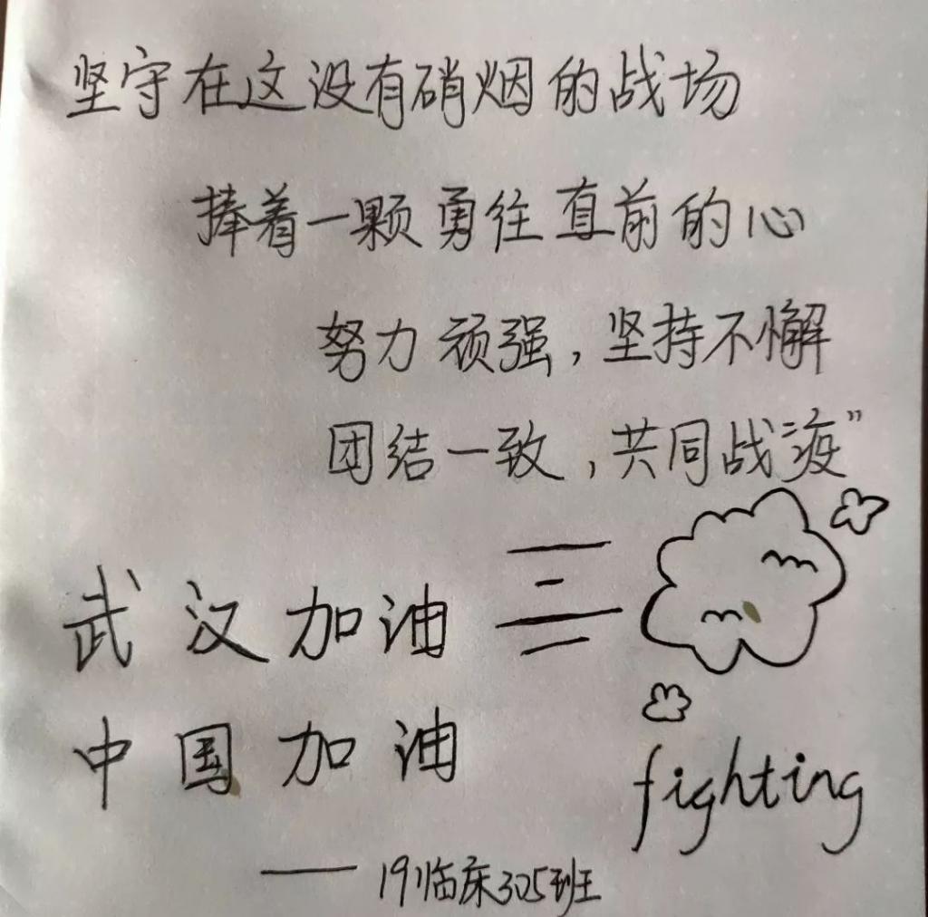 面對疫情我們眾志成城。冬將盡,春可期。山河無恙,世間皆安。在我系團總支的組織下,我們身在各地的臨床學子們共同參與寫下了一句句滿滿的加油和祝福語。