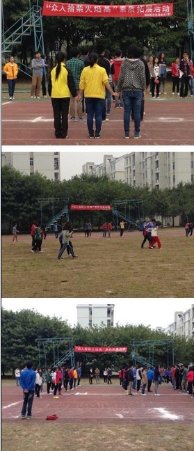 為進(jìn)一步提高學(xué)員的工作能力,以及培養(yǎng)大家的團(tuán)隊協(xié)作精神,12月8日下午,“青馬工程”培訓(xùn)班將第四次培訓(xùn)課程設(shè)置在了校田徑場,對學(xué)員進(jìn)行素質(zhì)拓展訓(xùn)練。 本次素質(zhì)拓展活動共分為三個環(huán)節(jié)進(jìn)行。首先是“三人四足”游戲,主要考驗了學(xué)員間的團(tuán)結(jié)協(xié)作能力。緊接著是“零錢大作戰(zhàn)”游戲,主要考驗了學(xué)員間的契合度。最后的應(yīng)激游戲則是考驗學(xué)員們的應(yīng)變及配合能力。三輪不同形式的游戲,分別從不同的方面給予學(xué)員鍛煉,提醒大家要時刻保持清醒的頭腦和冷靜的看待問題,相互協(xié)作,共同進(jìn)步。