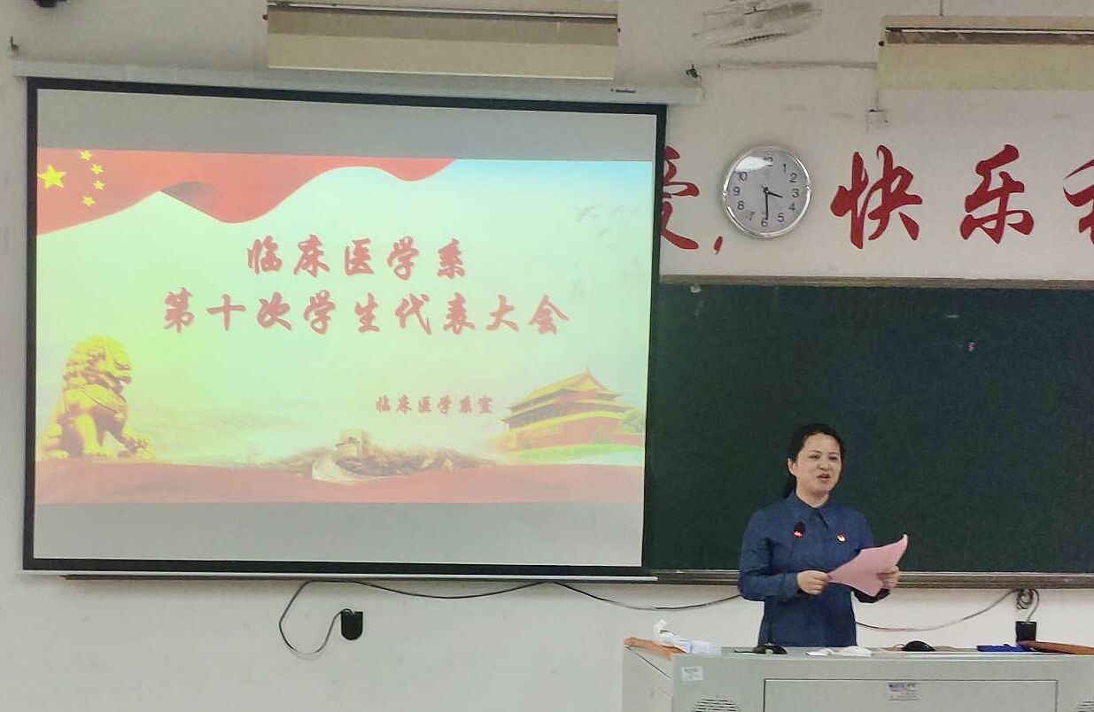 為認(rèn)真總結(jié)我系學(xué)生會在這一年以來的工作,確立今后的工作任務(wù)和奮斗目標(biāo),同時(shí)選舉產(chǎn)生新一屆的臨床系學(xué)生會主席團(tuán)成員。我系于2019年3月21日在教學(xué)樓210教室舉行臨床醫(yī)學(xué)系第十次學(xué)生代表大會。臨床醫(yī)學(xué)系黨總支陳俊穎副書記、團(tuán)總支書記葉家濤書記、團(tuán)總支謝林輝副書記、我系各輔導(dǎo)員們兩委會成員以及各班級代表參加了此次大會。