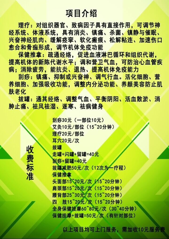 康樂(lè)工作室成員均為臨床系康復(fù)專業(yè)的同學(xué)組成,是該專業(yè)同學(xué)運(yùn)用所學(xué)知識(shí)進(jìn)行實(shí)踐,在專業(yè)老師的指導(dǎo)下創(chuàng)辦的大學(xué)生自主創(chuàng)業(yè)工作室,以理療、推拿、拔罐、刮痧等為主要項(xiàng)目。工作室秉承以誠(chéng)待人的服務(wù)態(tài)度,你我共贏的工作理念,為學(xué)校廣大師生服務(wù)。前期宣傳活動(dòng)發(fā)放了大量體驗(yàn)券,吸引了眾多學(xué)生以及老師前來(lái)咨詢,并前往工作室進(jìn)行體驗(yàn)。每周一至周五的中午,工作室均有同學(xué)輪班,由臨床系郭潔梅老師和徐麗鶯老師對(duì)同學(xué)們的操作進(jìn)行指導(dǎo)。