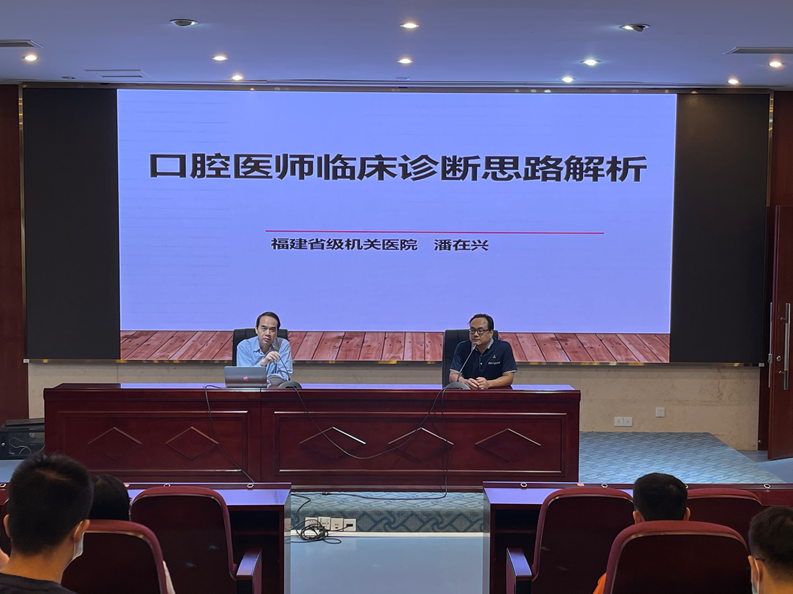5月23日,應(yīng)醫(yī)學(xué)系邀請(qǐng),附屬醫(yī)院福建省級(jí)機(jī)關(guān)醫(yī)院副院長(zhǎng)、國(guó)際牙科醫(yī)師學(xué)院院士(ICD)、福建省口腔質(zhì)量控制中心副主任潘在興教授,附屬醫(yī)院口腔中心副主任陳小華主任醫(yī)師到校為即將畢業(yè)的2018級(jí)口腔醫(yī)學(xué)專業(yè)學(xué)生分別做了《口腔臨床醫(yī)師診斷思路解析》、《口腔助理醫(yī)師崗位規(guī)范化技能操作》專題講座,醫(yī)學(xué)系邱滾忠書(shū)記、林國(guó)威副主任、林浩副主任、口腔教研室全體教師也一起到場(chǎng)聆聽(tīng)了報(bào)告。