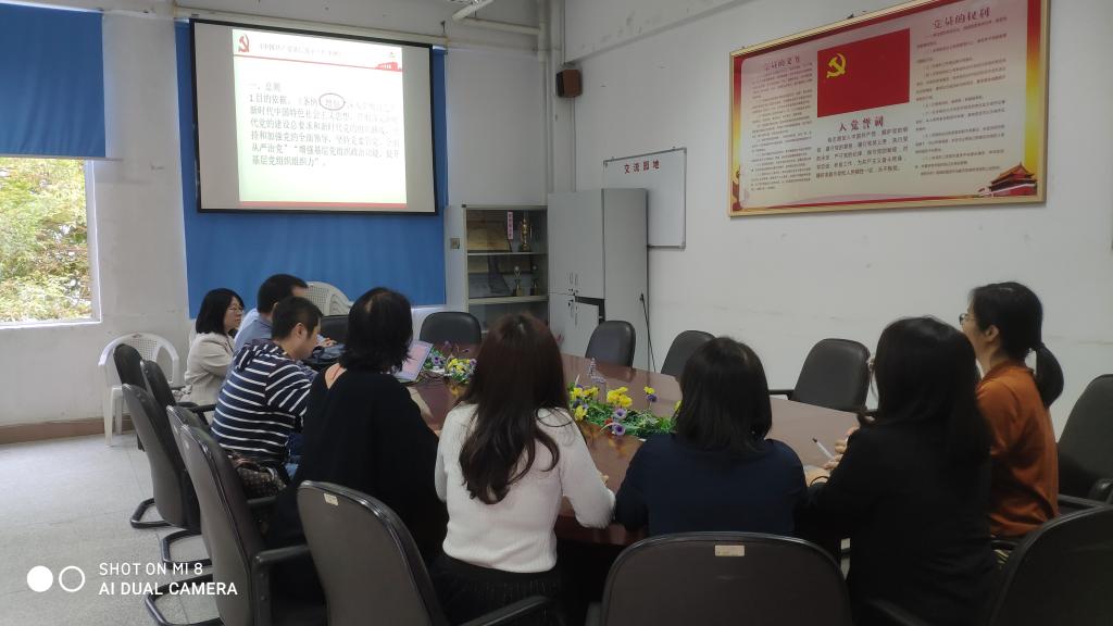 專題學(xué)習(xí)中,鄧元榮同志指出《條例》增加“深入貫徹習(xí)近平新時(shí)代中國(guó)特色社會(huì)主義思想,貫徹落實(shí)新時(shí)代黨的建設(shè)總要求和新時(shí)代黨的組織路線,堅(jiān)持和加強(qiáng)黨的全面領(lǐng)導(dǎo),堅(jiān)持黨要管黨、全面從嚴(yán)治黨”“增強(qiáng)基層黨組織政治功能、提升基層黨組織組織力”等內(nèi)容。接著從條例的適用范圍、注意事項(xiàng)、組織形式及選舉程序等幾個(gè)方面進(jìn)行了全面、系統(tǒng)、深入的解讀。與會(huì)老師聚精會(huì)神,認(rèn)真聆聽(tīng),邊看邊記,參與討論。