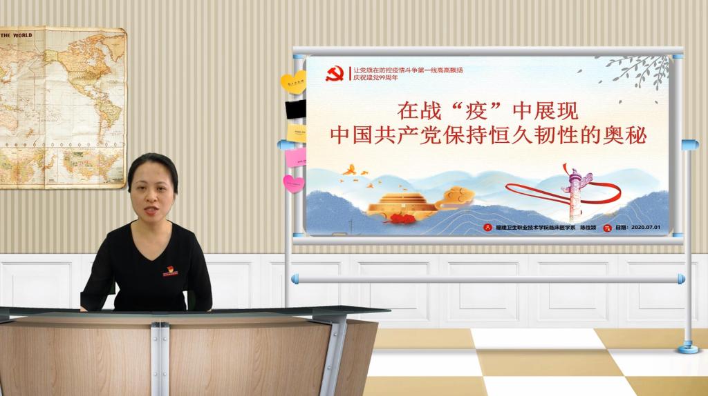 為迎接建黨99周年,深化黨內(nèi)教育,2020年七一前夕,我系黨總支負(fù)責(zé)人陳俊穎在線為入黨積極分子們講授微黨課《在戰(zhàn)“疫”中展現(xiàn)中國共產(chǎn)黨保持恒久韌性的奧秘》。
