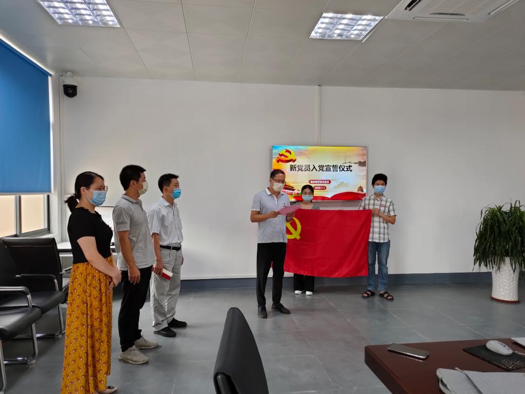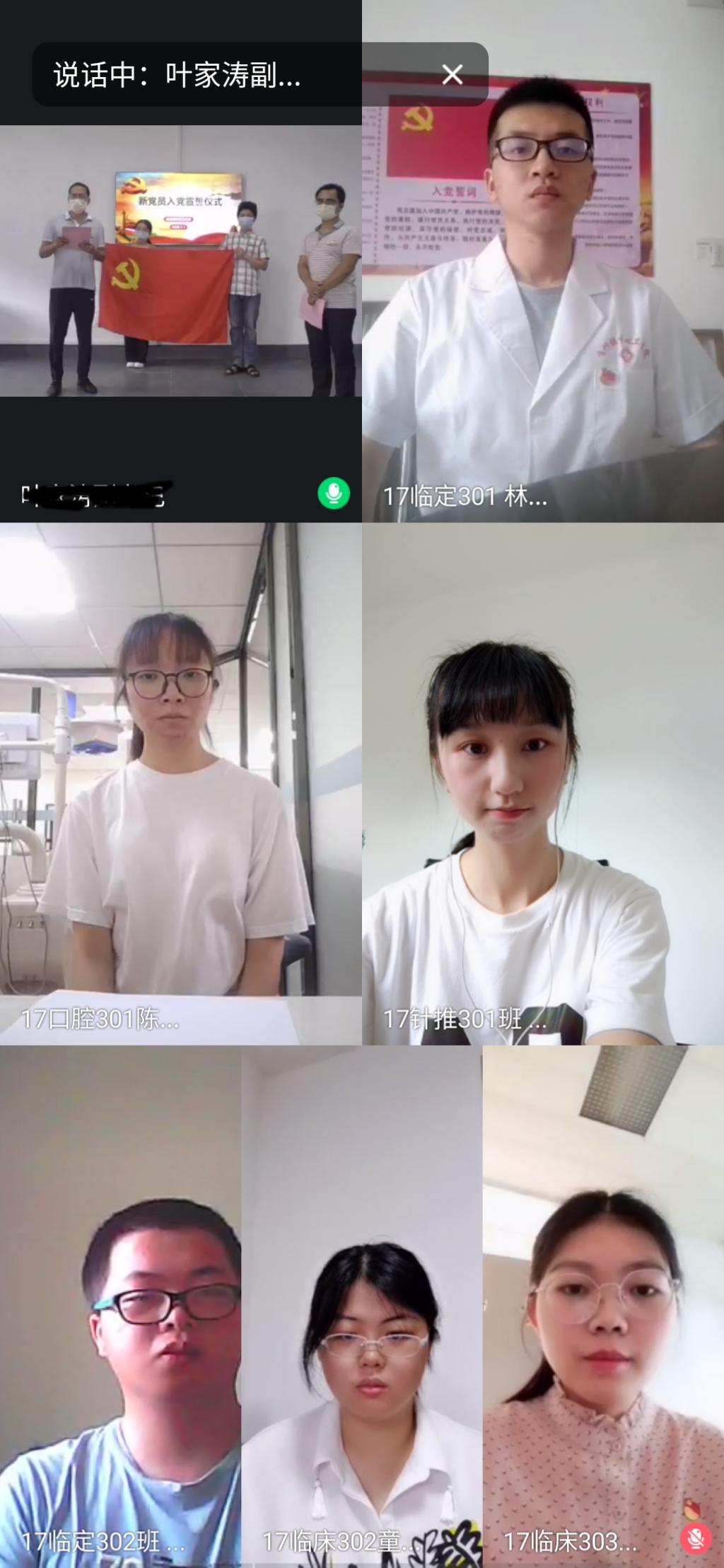 2020年7月1日,時值黨的第99個生日之際,臨床醫(yī)學系黨總支于實訓樓310舉行新黨員入黨宣誓儀式。由于疫情緣故,6位17級新黨員未能到場而在線上參加,臨床醫(yī)學系黨總支副書記郭禮堅、宣傳委員林浩、組織員葉家濤、第一黨支部書記朱翔、第二黨支部書記高長花及新黨員的入黨介紹人參加此次特殊的宣誓儀式。