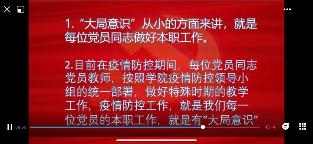 2020年7月9日,臨床醫(yī)學(xué)系第一黨支部書記朱翔同志以《增強(qiáng)“四個(gè)意識”》為題,為支部全體黨員線上講授專題微黨課。