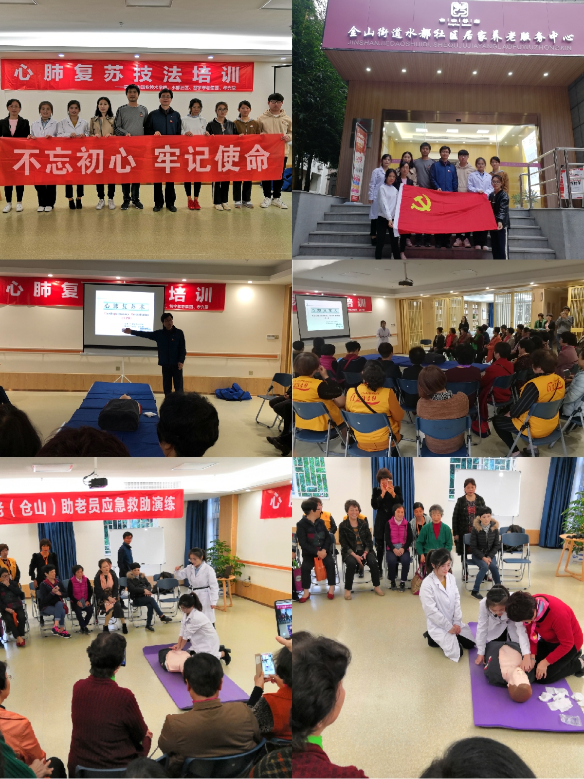 為深入學習貫徹習近平新時代中國特色社會主義思想和黨的十九大精神,進一步深化“不忘初心、牢記使命”主題教育,臨床醫(yī)學系第三黨支部組織黨員教師6名與學生入黨積極分子4名于11月22日下午在福州市金山街道水都社區(qū)居家養(yǎng)老服務中心(下稱“中心”)開展“分秒必爭—心肺復蘇術(shù)培訓”的主題黨日活動。