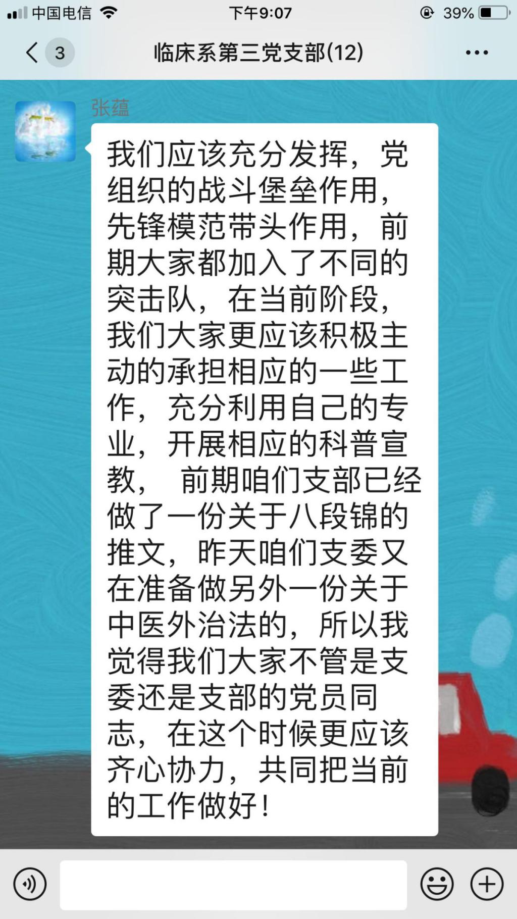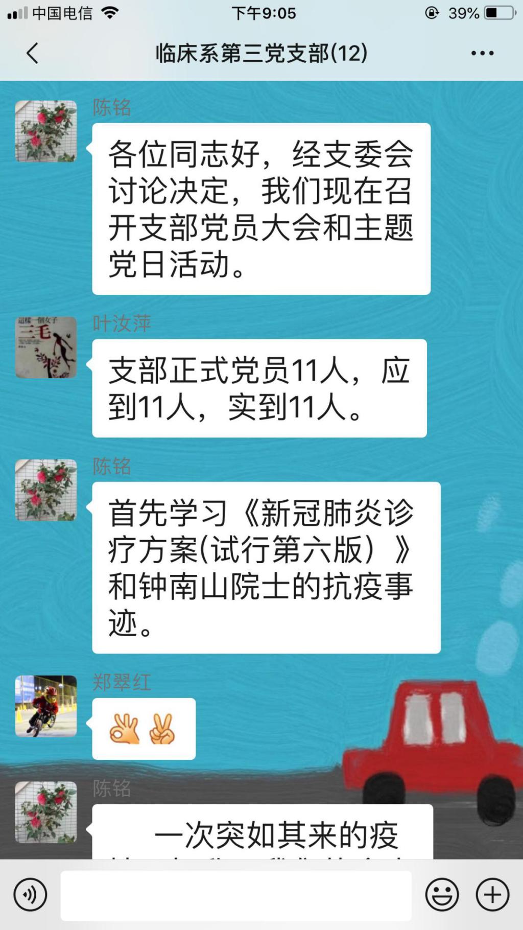 為積極應(yīng)對新型冠狀病毒感染,幫助支部黨員提高專業(yè)知識、強化政治意識。2月21日晚上,臨床醫(yī)學(xué)系第三黨支部利用在線平臺開展學(xué)習(xí)《新冠肺炎診療方案(試行第六版)》和鐘南山院士的抗疫事跡支部大會,全體黨員參加了此次大會。大會由支部書記陳銘同志主持。
