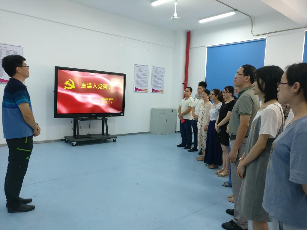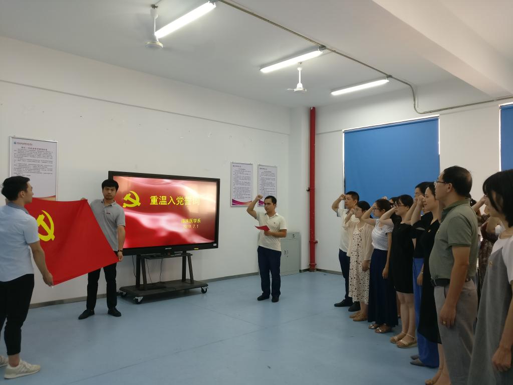 2019年7月1日,在中國共產(chǎn)黨成立98周年之際,為進(jìn)一步教育引導(dǎo)全體黨員不忘初心、牢記使命,臨床醫(yī)學(xué)系第一、第二、第三黨支部在實(shí)訓(xùn)樓401舉辦“重溫入黨誓詞,牢記初心使命”主題黨日活動。