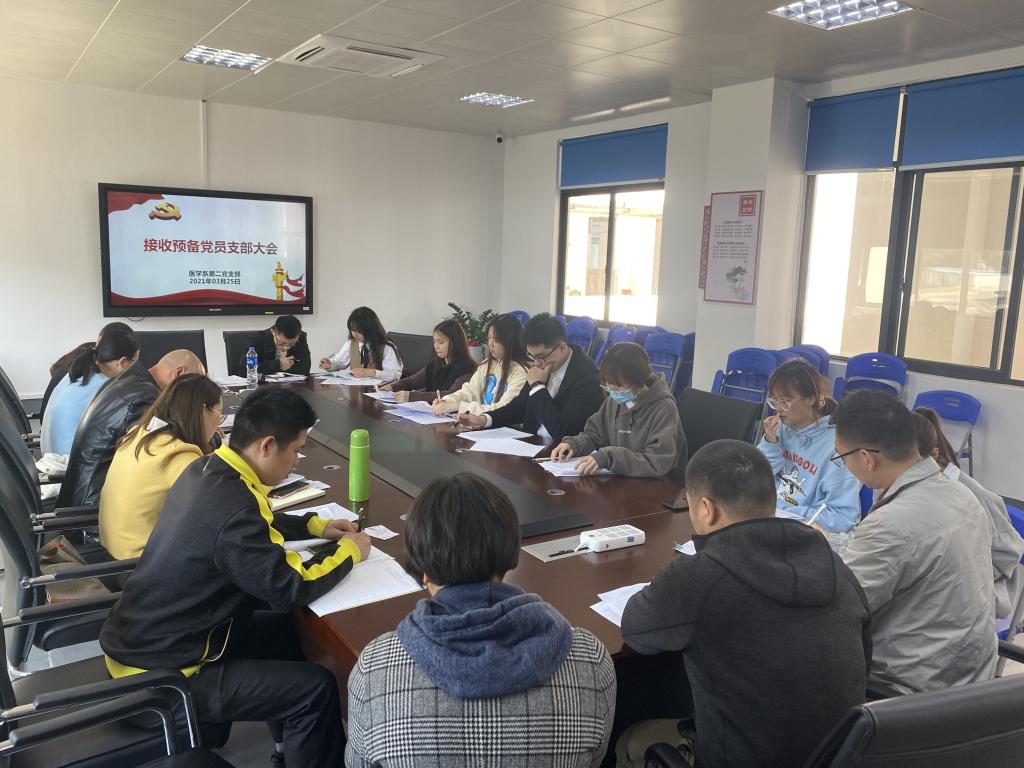 2021年3月25日上午,醫(yī)學(xué)系第二黨支部在實(shí)訓(xùn)樓311會(huì)議室召開(kāi)接收預(yù)備黨員大會(huì)。會(huì)議由支部書(shū)記高長(zhǎng)花同志主持,支部11名正式黨員,產(chǎn)假1名,事假1名,其余9名黨員全部與會(huì)。