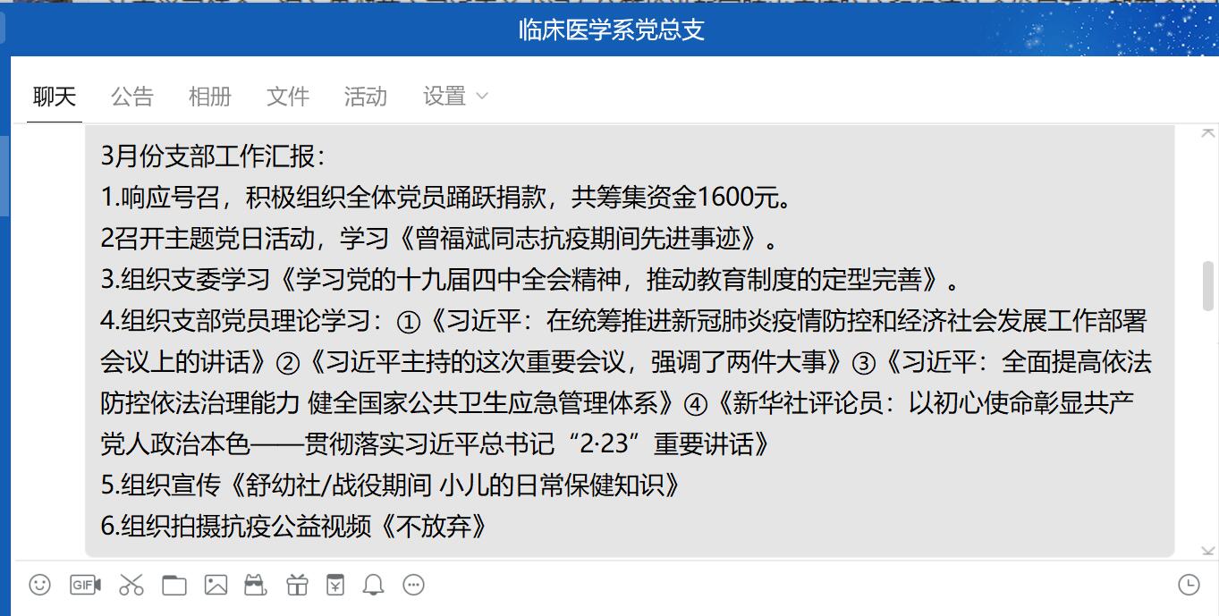 2020年3月12日,臨床醫(yī)學(xué)系黨總支在QQ群召開2月份支部書記例會,會議由系黨總支負(fù)責(zé)人陳俊穎主持。