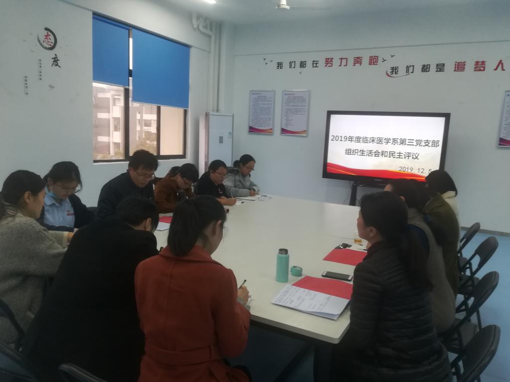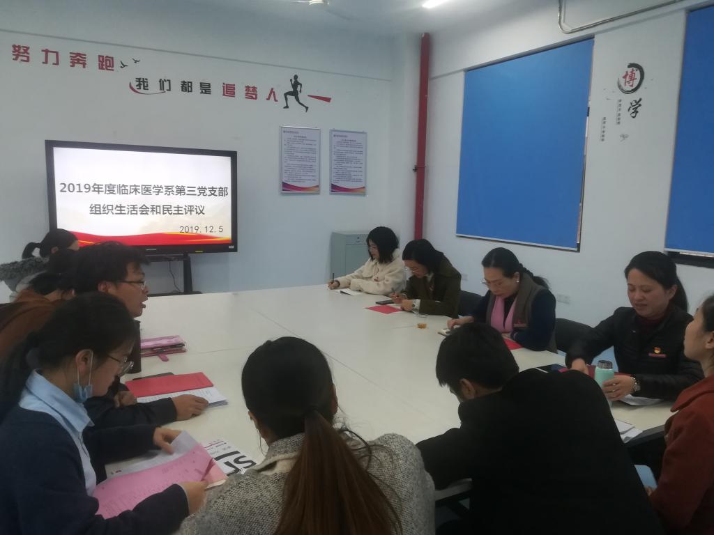 為繼續(xù)貫徹“不忘初心、牢記使命”主題教育,臨床醫(yī)學(xué)系第三黨支部按照學(xué)院黨委和系黨總支的工作部署,于2019年12月5日下午在實訓(xùn)樓401召開專題組織生活會和民主評議黨員工作。副校長鄭翠紅同志以黨員身份參加活動,臨床醫(yī)學(xué)系黨總支負(fù)責(zé)人陳俊穎列席,會議由黨支部書記陳銘主持。