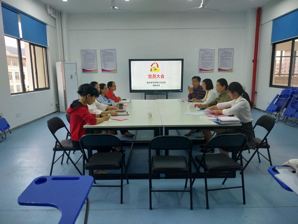 根據“不忘初心、牢記使命”主題教育工作部署,為推動教師黨支部“雙帶頭人”建設工作,臨床醫(yī)學系第三黨支部于2019年11月6日下午召開黨員大會,開展支部委員增補工作。支部應到正式黨員10名,實到9名,1名同志因公出差缺席,有選舉權的黨員到會人數符合法定人數。