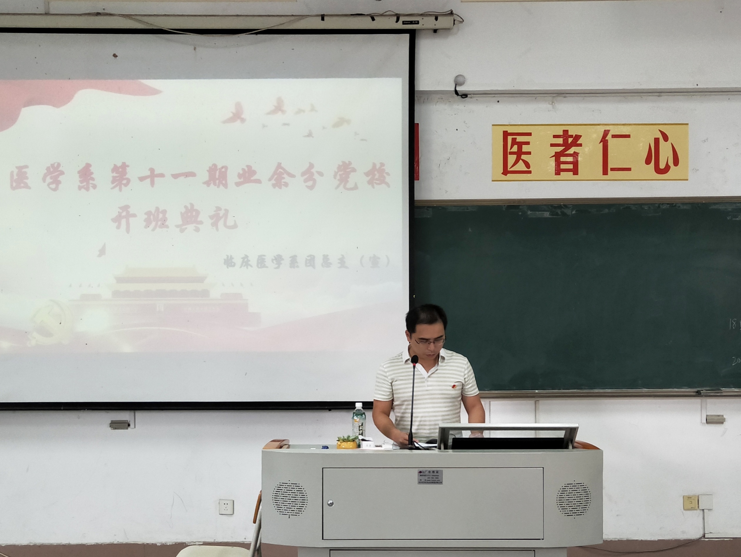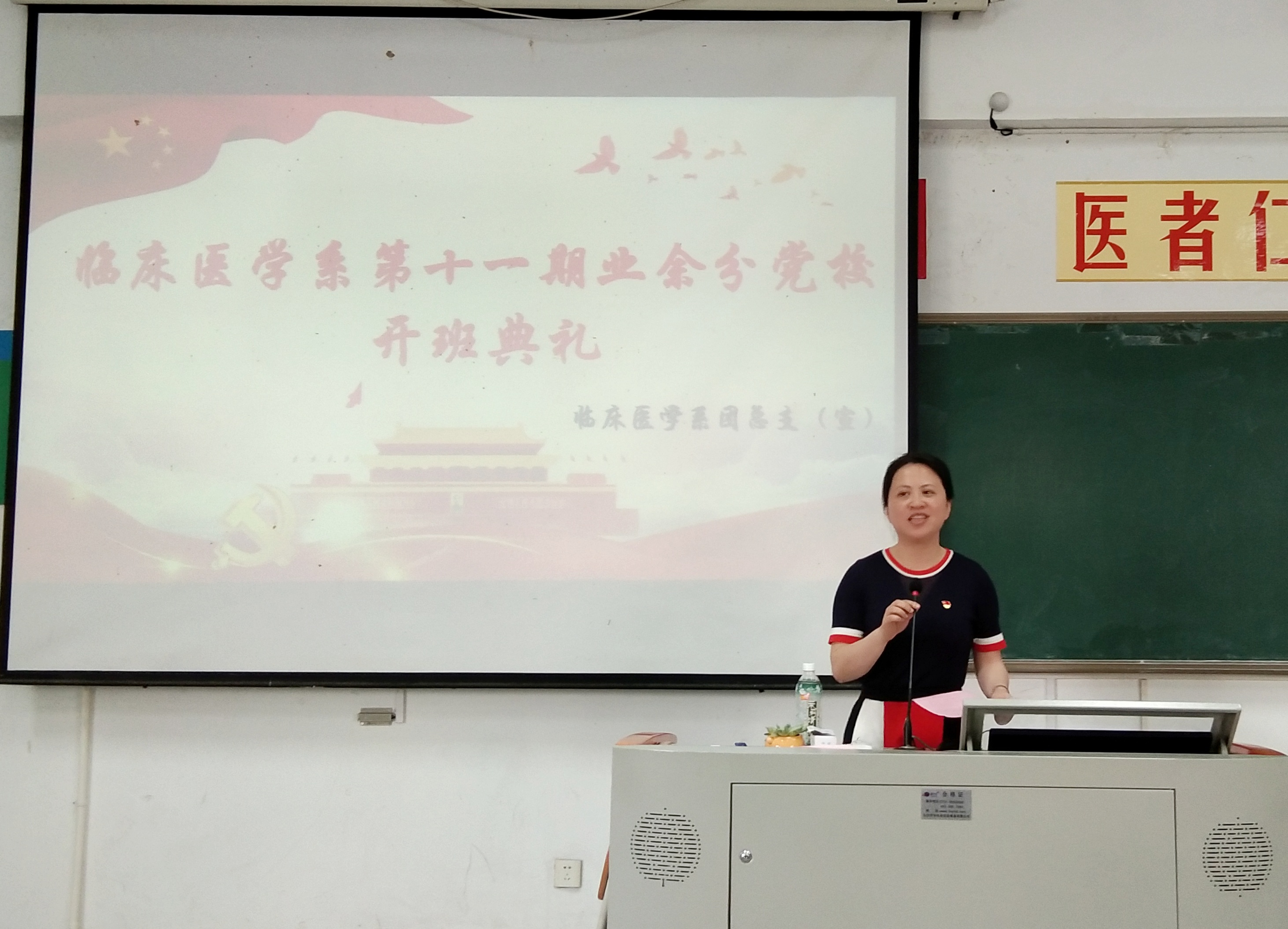 為做好我系學(xué)生黨員的發(fā)展工作,臨床醫(yī)學(xué)系第十一期業(yè)余黨校于2019年4月24日中午在基礎(chǔ)部二階舉行開班儀式。臨床醫(yī)學(xué)系郭禮堅主任、系黨總支陳俊穎副書記、林浩副主任、第二黨支部葉家濤書記以及各支委和系團(tuán)總支各委員、第十一期入黨積極分子共同出席此次開班儀式。