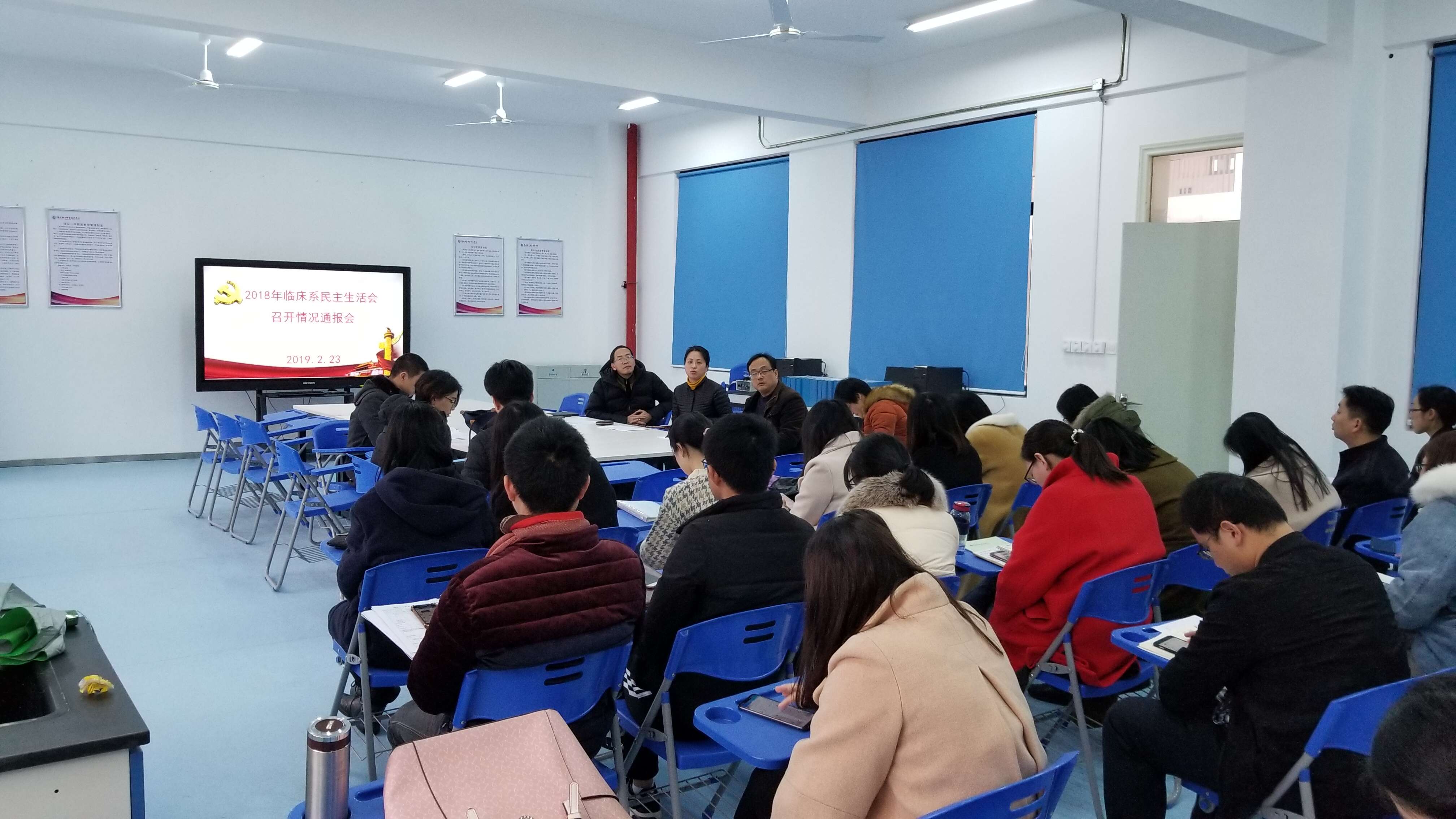 2月23日,臨床醫(yī)學(xué)系召開(kāi)全體教職工大會(huì),對(duì)2018年度臨床醫(yī)學(xué)系黨員領(lǐng)導(dǎo)干部民主生活會(huì)的情況進(jìn)行通報(bào),會(huì)議由陳俊穎副書(shū)記主持。