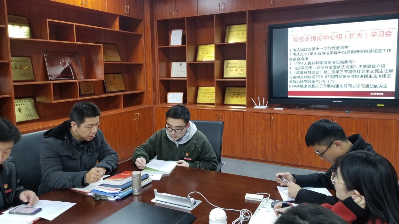 會上,邱滾忠傳達(dá)了福建省第十一次黨代會精神以及校黨委理論學(xué)習(xí)中心組(擴(kuò)大)會議精神,并系統(tǒng)梳理了本次學(xué)習(xí)的內(nèi)容,指導(dǎo)大家如何深入學(xué)習(xí)領(lǐng)會各項(xiàng)學(xué)習(xí)的精髓。