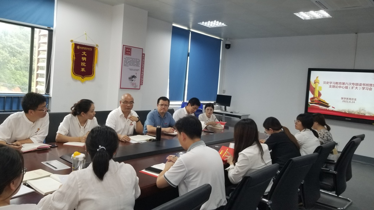 6月24日,醫(yī)學(xué)系在實訓(xùn)樓311召開黨總支理論學(xué)習(xí)中心組(擴大)會議暨黨史學(xué)習(xí)教育第六次專題讀書班,學(xué)習(xí)《深入學(xué)習(xí)習(xí)近平關(guān)于教育的重要論述》《習(xí)近平總書記教育重要論述講義》、習(xí)近平總書記在廣西考察時的重要講話精神、中共教育部黨組關(guān)于學(xué)習(xí)貫徹習(xí)近平總書記給《文史哲》編輯部全體編輯人員重要回信精神的通知等內(nèi)容。會議由系黨總支書記邱滾忠主持,醫(yī)學(xué)系黨總支委員以及各支部委員參加了會議,邱滾忠及第二黨支部宣傳委員江潔做主題發(fā)言。