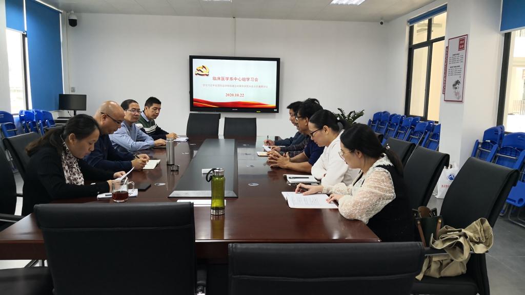 2020年10月22日,臨床醫(yī)學(xué)系在實(shí)訓(xùn)樓311召開(kāi)中心組學(xué)習(xí)會(huì)議,學(xué)習(xí)《關(guān)于貫徹落實(shí)〈新時(shí)代高等學(xué)校思想政治理論課教師隊(duì)伍建設(shè)規(guī)定〉的實(shí)施方案》、《思政課是落實(shí)立德樹(shù)人根本任務(wù)的關(guān)鍵課程》、《關(guān)于開(kāi)展向“時(shí)代楷?!遍}寧對(duì)口扶貧協(xié)作援寧群體學(xué)習(xí)活動(dòng)的決定》和《習(xí)近平在深圳經(jīng)濟(jì)特區(qū)建立40周年慶祝大會(huì)上的講話》,會(huì)議由系黨總支負(fù)責(zé)人邱滾忠同志主持。