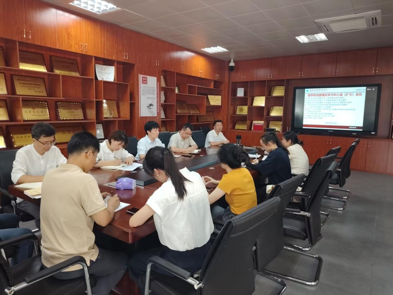 6月19日,醫(yī)學(xué)院召開黨委理論學(xué)習(xí)中心組(擴(kuò)大)會(huì)議暨學(xué)習(xí)教育讀書班學(xué)習(xí)。黨委書記黃小芳主持會(huì)議,學(xué)院黨政班子成員,各黨支部支委,團(tuán)總支書記參加學(xué)習(xí)。