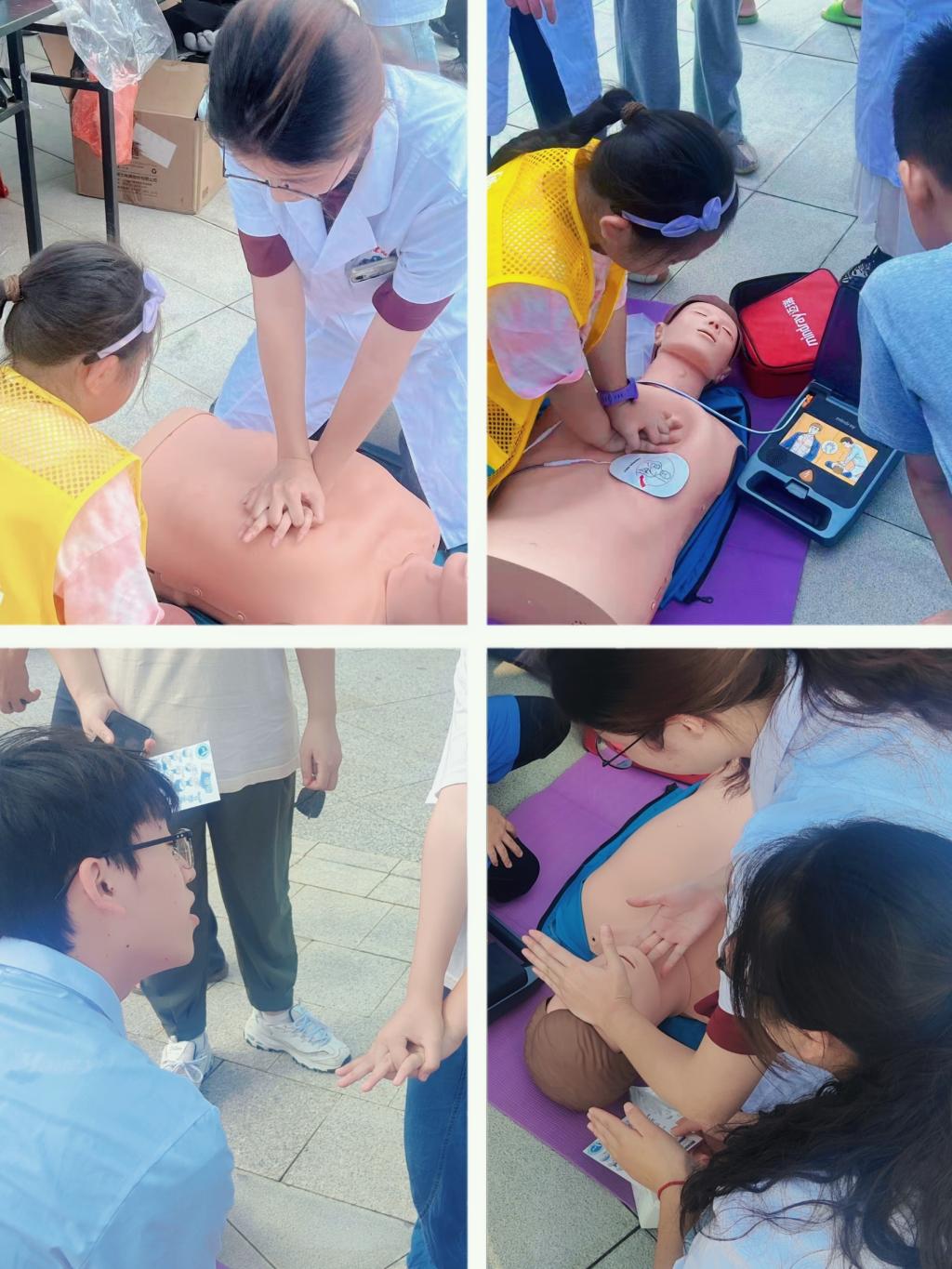 本次活動主場設(shè)于旗山湖公園北廣場,現(xiàn)場人流密集、氛圍熱烈。我校師生團(tuán)隊(duì)聚焦公眾健康需求,搭建起沉浸式科普體驗(yàn)區(qū),重點(diǎn)展示現(xiàn)場心肺復(fù)蘇術(shù)操作流程、簡易電除顫儀使用規(guī)范及常見關(guān)節(jié)外傷包扎技巧。演示過程中,學(xué)生志愿者結(jié)合真實(shí)急救案例,細(xì)致講解操作要點(diǎn),同時一對一指導(dǎo)民眾實(shí)操,耐心糾正動作偏差,幫助大家掌握關(guān)鍵急救技能。