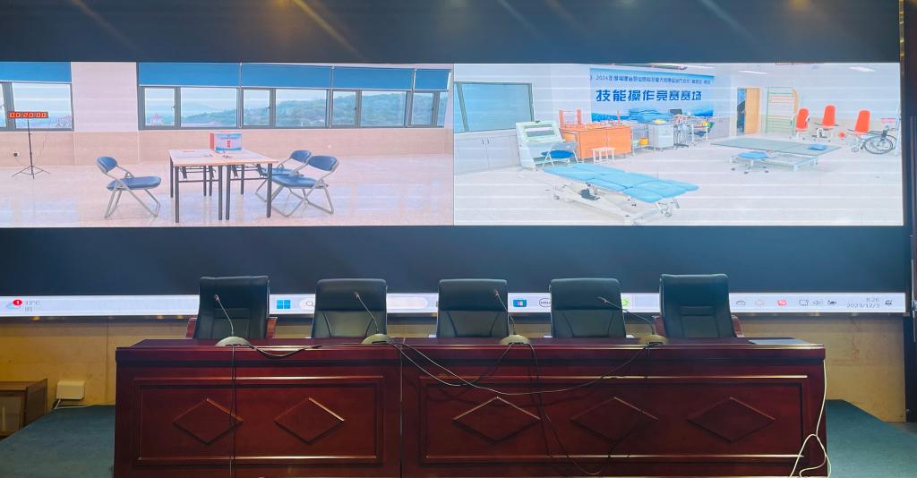 本次比賽設置了觀摩室,各參賽院校的領隊與指導教師們通過在線高清直播觀看整場比賽。