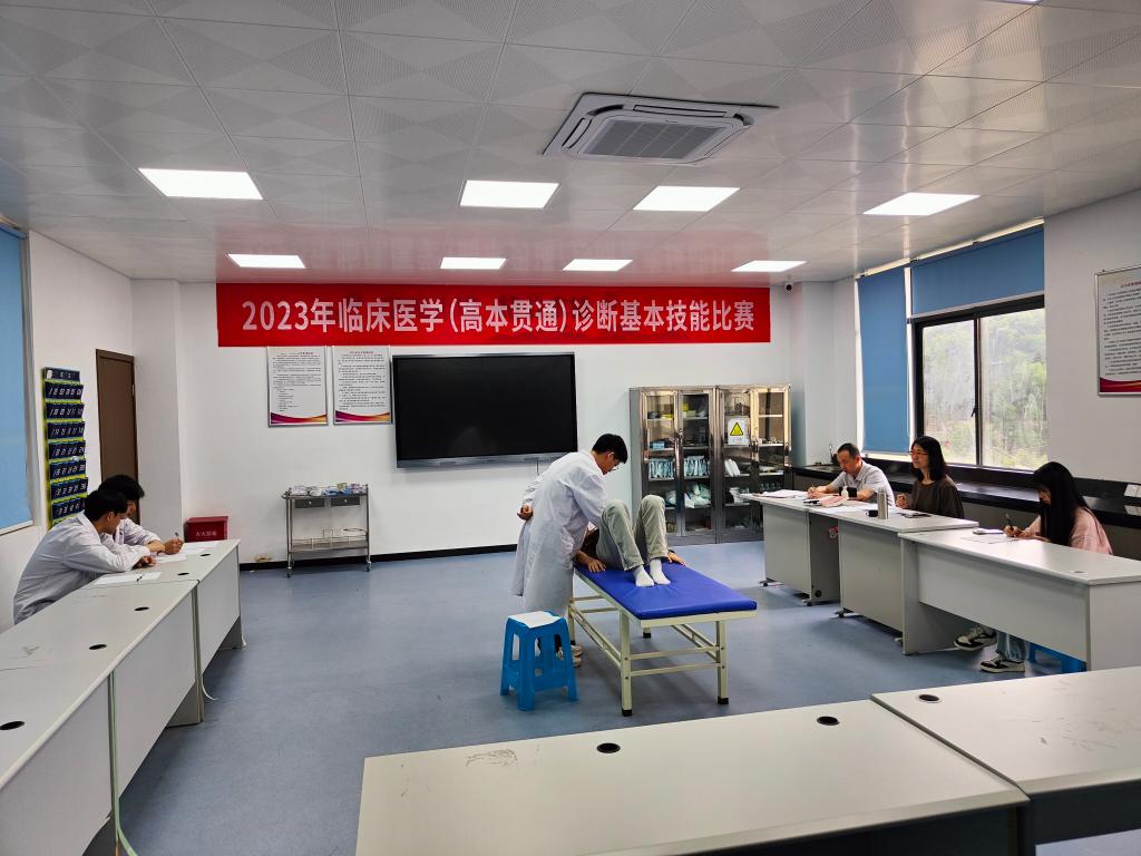 為全面貫徹落實(shí)黨的二十大精神,進(jìn)一步推動(dòng)臨床醫(yī)學(xué)實(shí)踐教學(xué)改革,創(chuàng)新實(shí)踐教學(xué)體系,加強(qiáng)醫(yī)學(xué)生臨床思維、技能操作能力、人文關(guān)懷精神的培養(yǎng),提升醫(yī)學(xué)生科技創(chuàng)新能力、實(shí)踐能力和團(tuán)隊(duì)合作意識(shí),5月20日,由醫(yī)學(xué)院教師第一黨支部、醫(yī)學(xué)院團(tuán)總支、臨床醫(yī)學(xué)專業(yè)舉辦的“臨床醫(yī)學(xué)(高本貫通)診斷基本技能比賽”正式拉開(kāi)帷幕。大賽前期經(jīng)過(guò)初賽角逐,共12名學(xué)生4支隊(duì)伍進(jìn)入決賽。比賽包括個(gè)人賽和團(tuán)體賽兩個(gè)賽項(xiàng),個(gè)人賽項(xiàng)目為體格檢查,團(tuán)體賽包括病史采集、體格檢查及病例分析三個(gè)項(xiàng)目。