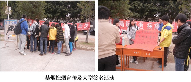 為營造健康清新的宿舍及校園環(huán)境,進(jìn)一步杜絕吸煙現(xiàn)象,11月26日12:30,臨床醫(yī)學(xué)系兩委會(huì)在一餐門口前開展了“健康隨煙而逝病痛隨煙而生”校園禁煙控?zé)熜麄骷按笮秃灻顒?dòng)。本次活動(dòng)得到了院系領(lǐng)導(dǎo)、老師和同學(xué)們的關(guān)注,他們都紛紛駐足在宣傳橫幅上簽字,以表達(dá)對(duì)禁煙控?zé)煿ぷ鞯拇罅χС帧M瑫r(shí),也希望通過這一活動(dòng)讓每一位同學(xué)都能夠自覺規(guī)范行為,堅(jiān)決做到禁煙控?zé)?,為?chuàng)建無煙校園貢獻(xiàn)自己的一份力量。