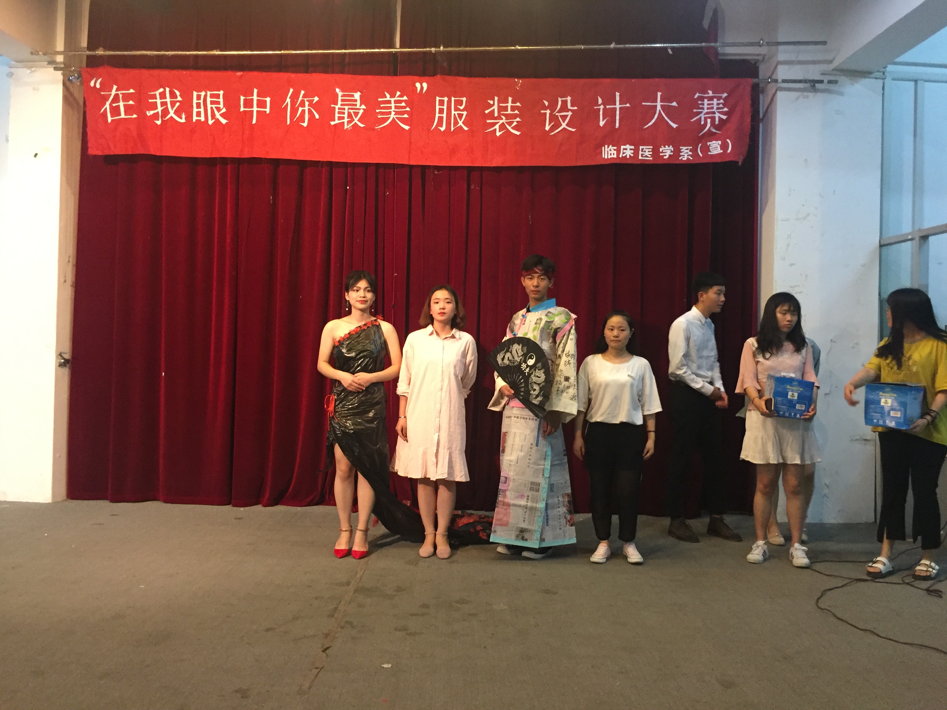 為增強(qiáng)環(huán)保意識(shí),陶冶藝術(shù)情操,展現(xiàn)同學(xué)們的動(dòng)手能力和風(fēng)采,臨床醫(yī)學(xué)系兩委會(huì)于5月3日晚在師生活動(dòng)中心舉辦服裝設(shè)計(jì)大賽,由兩委會(huì)成員擔(dān)任評委。