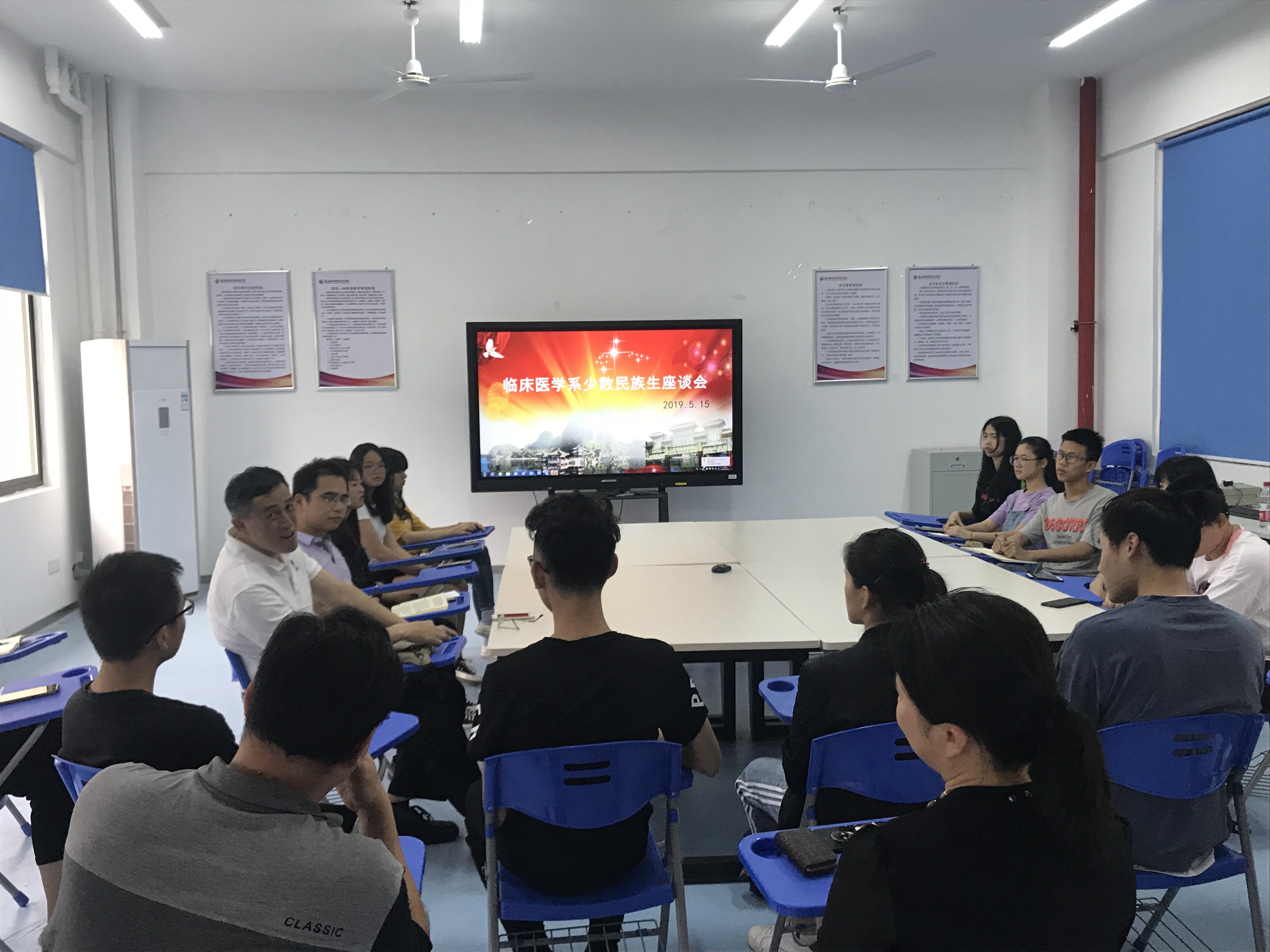 2019年5月15日,臨床醫(yī)學(xué)系在實訓(xùn)樓401召開18級少數(shù)民族學(xué)生座談會。系關(guān)工委常務(wù)副主任、原系黨支部書記洪聿榮應(yīng)邀出席了座談會,陳俊穎副書記、林國威副主任也參加了此次活動。
