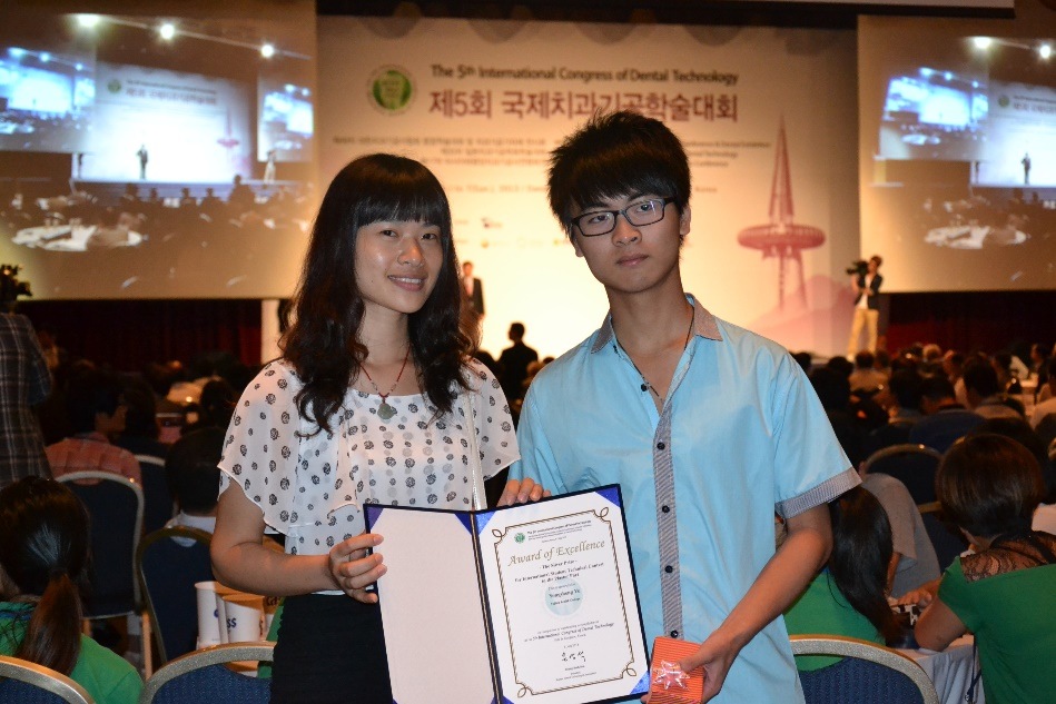 (學(xué)生獲第五屆國際口腔技師學(xué)術(shù)大會(huì)(韓國)口腔醫(yī)學(xué)技術(shù)專業(yè)石膏牙雕刻銀獎(jiǎng)(第二名),是第一個(gè)在該項(xiàng)國際比賽中獲獎(jiǎng)的中國學(xué)生,實(shí)現(xiàn)了中國零的突破。)