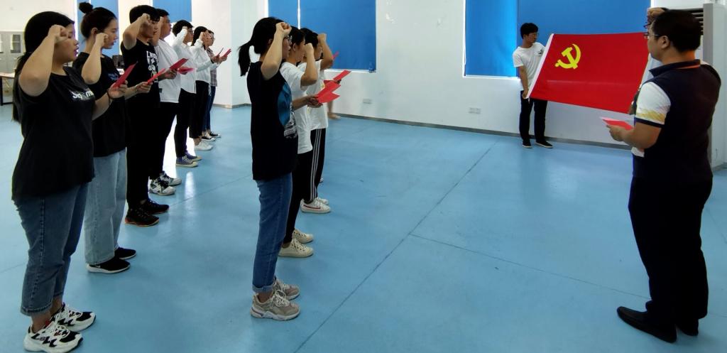 宣誓儀式由葉家濤同志主持,在莊嚴的《國際歌》中活動拉開帷幕。葉家濤同志宣讀新黨員名單并帶領(lǐng)他們在黨旗前莊嚴宣誓,表達了為黨的事業(yè)奮斗終身的決心,參加活動的老黨員也重溫了入黨誓詞。新黨員代表王繼鑒同學發(fā)言,表示會在以后的工作和學習中牢記入黨誓詞。老黨員代表謝林輝老師分享自身感受并希望大家在未來的時間里牢記使命,做一名優(yōu)秀的黨員。熊美蘭院長與陳俊穎副書記也對新黨員們提出了希望,希望他們不僅要在思想上、行為上入黨,更要牢記黨的宗旨,履行黨員義務;希望他們能牢記今天在黨旗下的誓言,不忘入黨的初心,全心全意為人民服務。