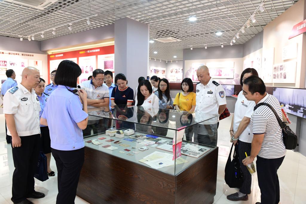 支部黨員在講解員的帶領下參觀了警察學院忠誠館。展覽館以“崢嶸歲月,忠誠信念永傳承”、“閩海干城,赤膽忠心保政權”、“探索創(chuàng)新,改革潮頭護航程”、“立德樹人,忠誠教育鑄警魂”四大篇章,重點介紹了福建蘇區(qū)公安保衛(wèi)組織,新中國成立以來我省各級公安機關和廣大公安民警,以及福建警察學院為保衛(wèi)革命政權、護航改革開放、維護社會大局穩(wěn)定、促進社會公平正義、保障人民安居樂業(yè)、培育黨和人民忠誠衛(wèi)士所作出的突出貢獻。展館是了解福建公安紅色歷史,開展忠誠教育,傳播紅色基因,鍛造人民警察忠誠意識的重要平臺。