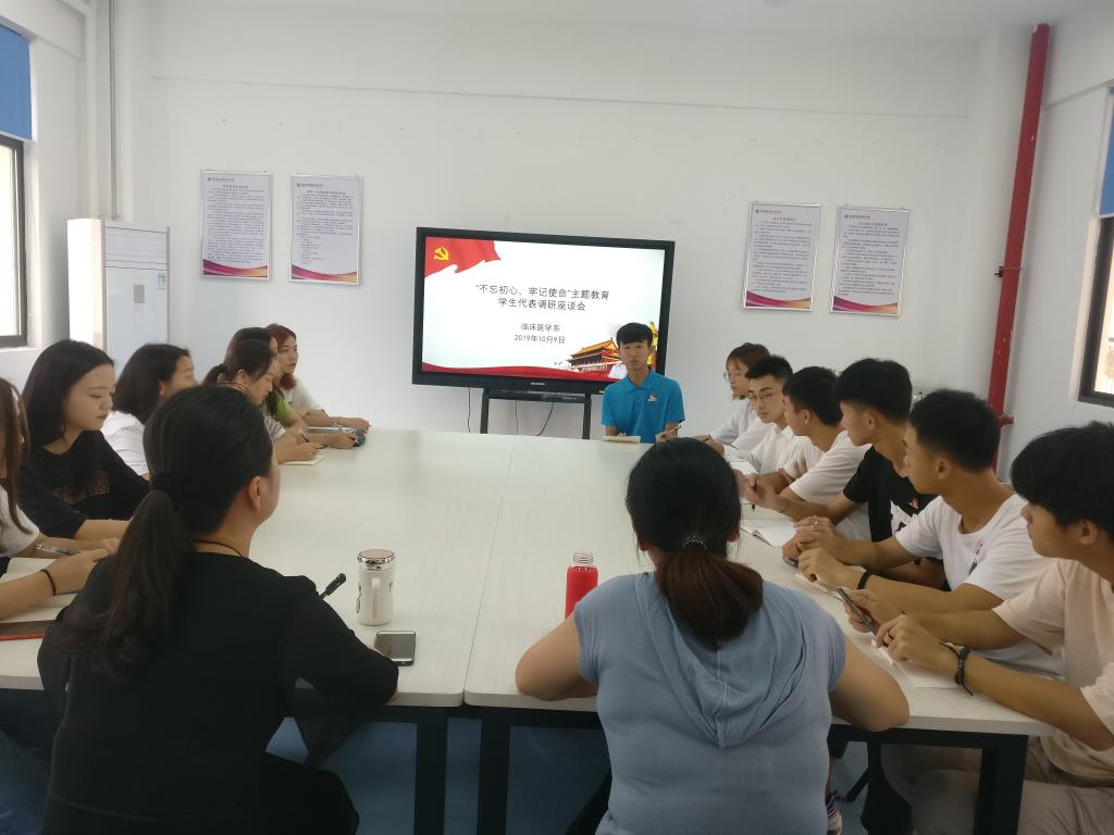 按照“不忘初心、牢記使命”主題教育要求,要把學習教育、調(diào)查研究、檢視問題、整改落實貫穿主題教育全過程。10月9日,臨床醫(yī)學系于實訓樓401召開了學生代表專場調(diào)研座談會,專題調(diào)研了解各類學生在學習、生活中的困難,征求他們對系部工作的意見建議。系黨總支負責人陳俊穎和副書記陳潔參加了座談。