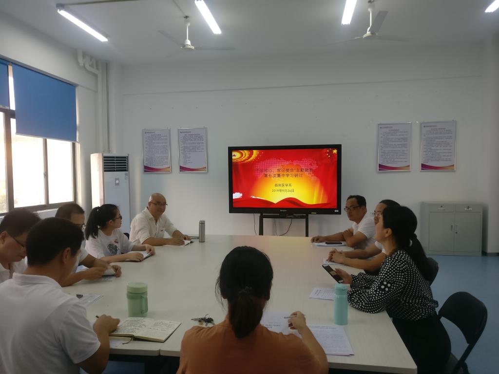2019年9月26日,臨床醫(yī)學系黨總支在實訓樓401召開“不忘初心、牢記使命”主題教育第七次集中學習研討,本次研討的主題是:牢記為民使命,強化作風建設(shè)。研討會由系黨總支負責人陳俊穎主持,學院巡回指導(dǎo)七小組成員醫(yī)技系黨總支負責人邱滾忠、組織員黃玲云出席。