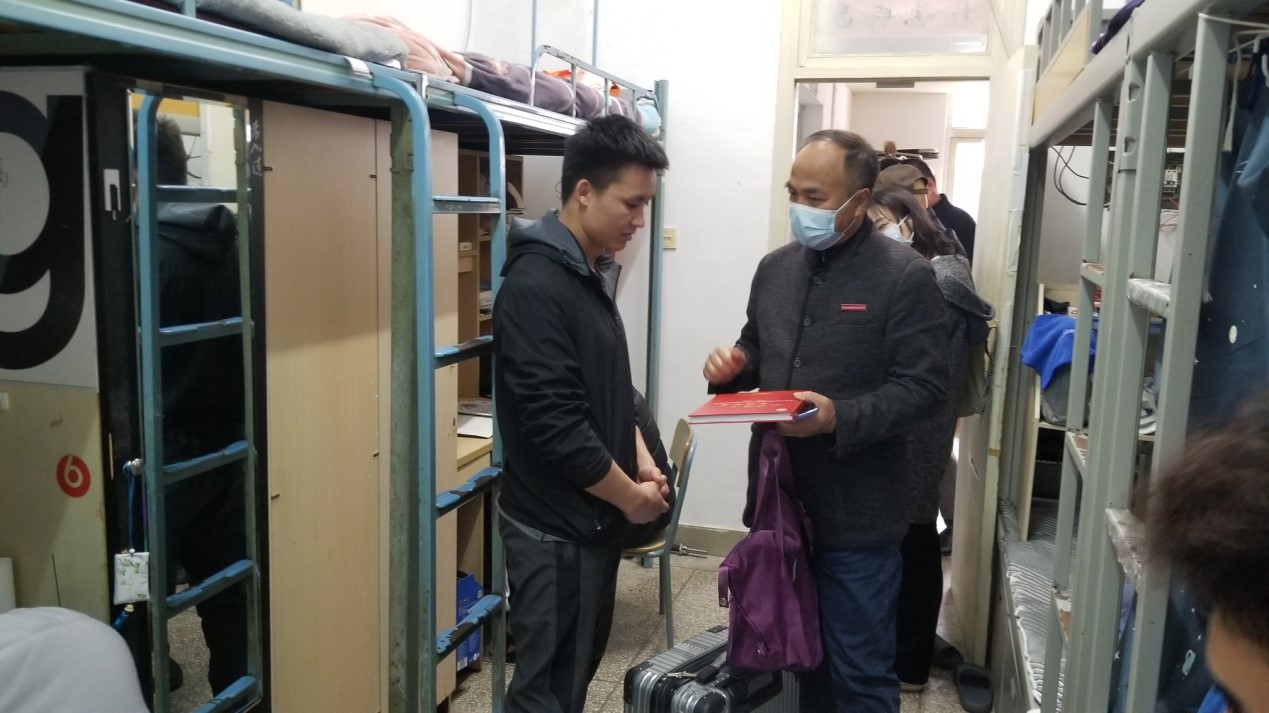 2月14日,校長許能鋒在院黨總支書記邱滾忠、副書記陳潔的陪同下,深入學(xué)生宿舍走訪慰問了我院少數(shù)民族學(xué)生,送去關(guān)懷和問候。