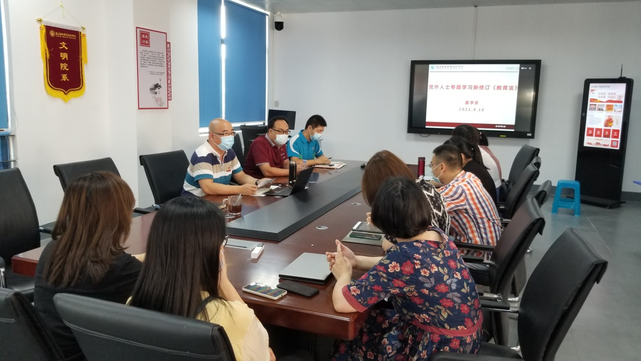 9月16日,醫(yī)學(xué)系組織黨外人士開展專題學(xué)習(xí)會,專題學(xué)習(xí)新修訂的《中華人民共和國教育法》。會議由系黨總支書記邱滾忠主持。