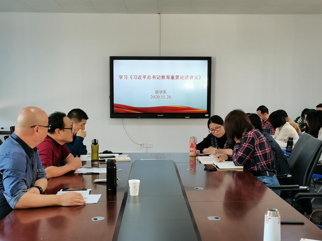 2020年11月26日,醫(yī)學(xué)系召開系部大會(huì),集體學(xué)習(xí)《習(xí)近平總書記教育重要論述講義》第四、五、六講等相關(guān)內(nèi)容。會(huì)議由黨總支書記邱滾忠主持。