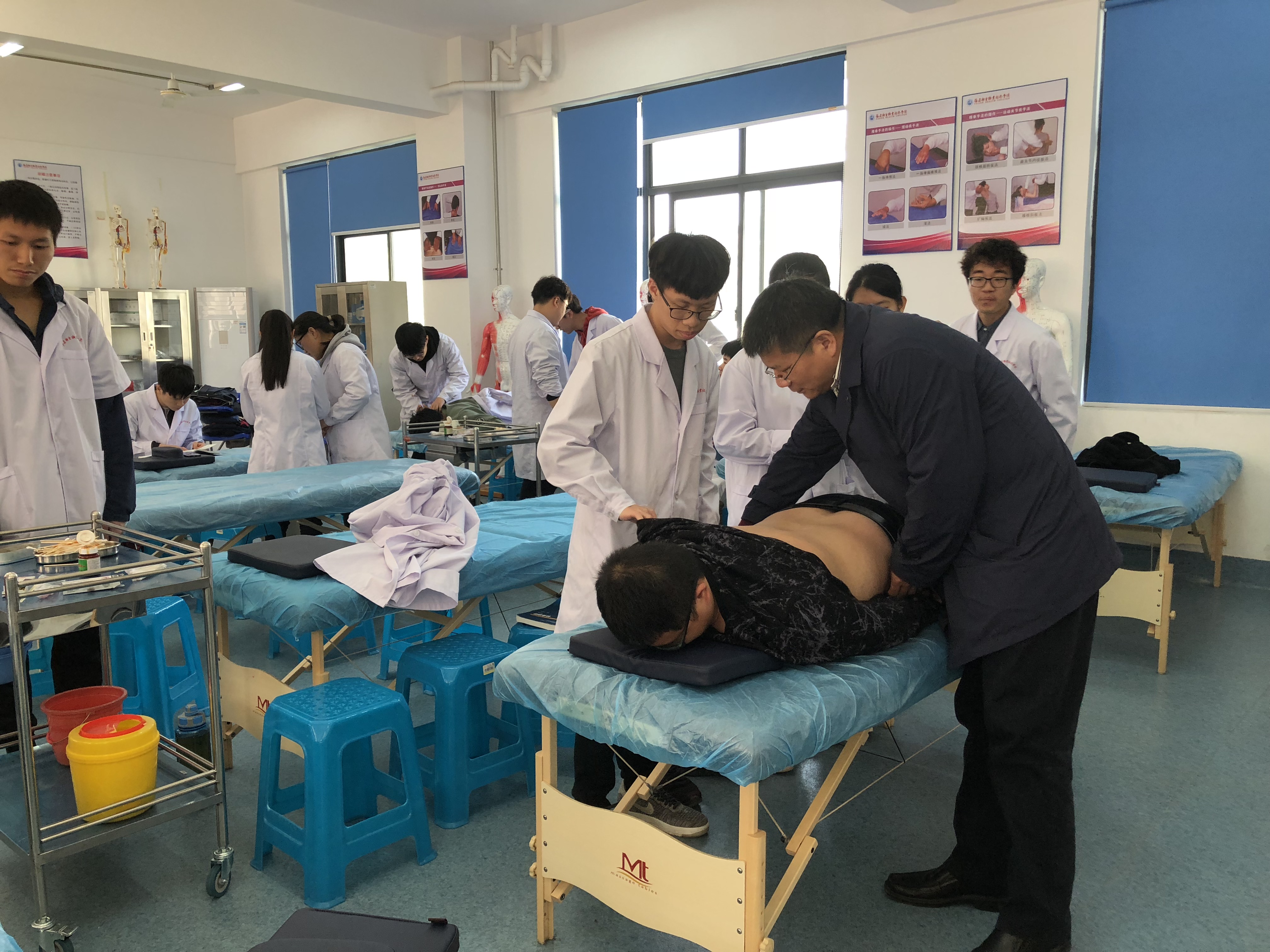 接著,蘇友新院長(zhǎng)來(lái)到實(shí)訓(xùn)樓402教室,認(rèn)真觀看了2017級(jí)針推301班實(shí)訓(xùn)教學(xué)情況,課間與學(xué)生進(jìn)行交流,關(guān)心了解學(xué)生在校的學(xué)生生活情況,并現(xiàn)場(chǎng)指導(dǎo)了學(xué)生的針灸手法和相關(guān)針灸理論知識(shí)。