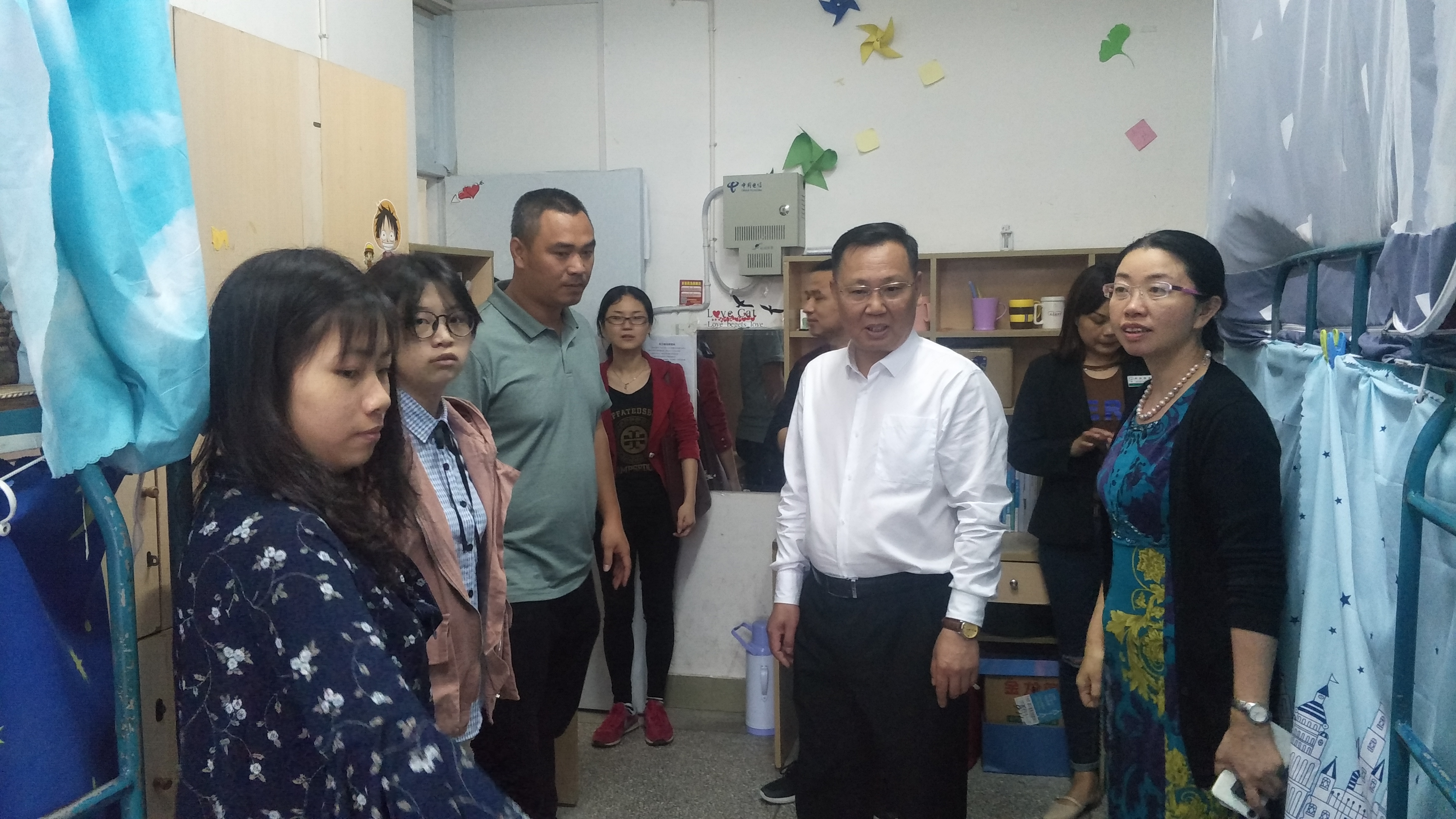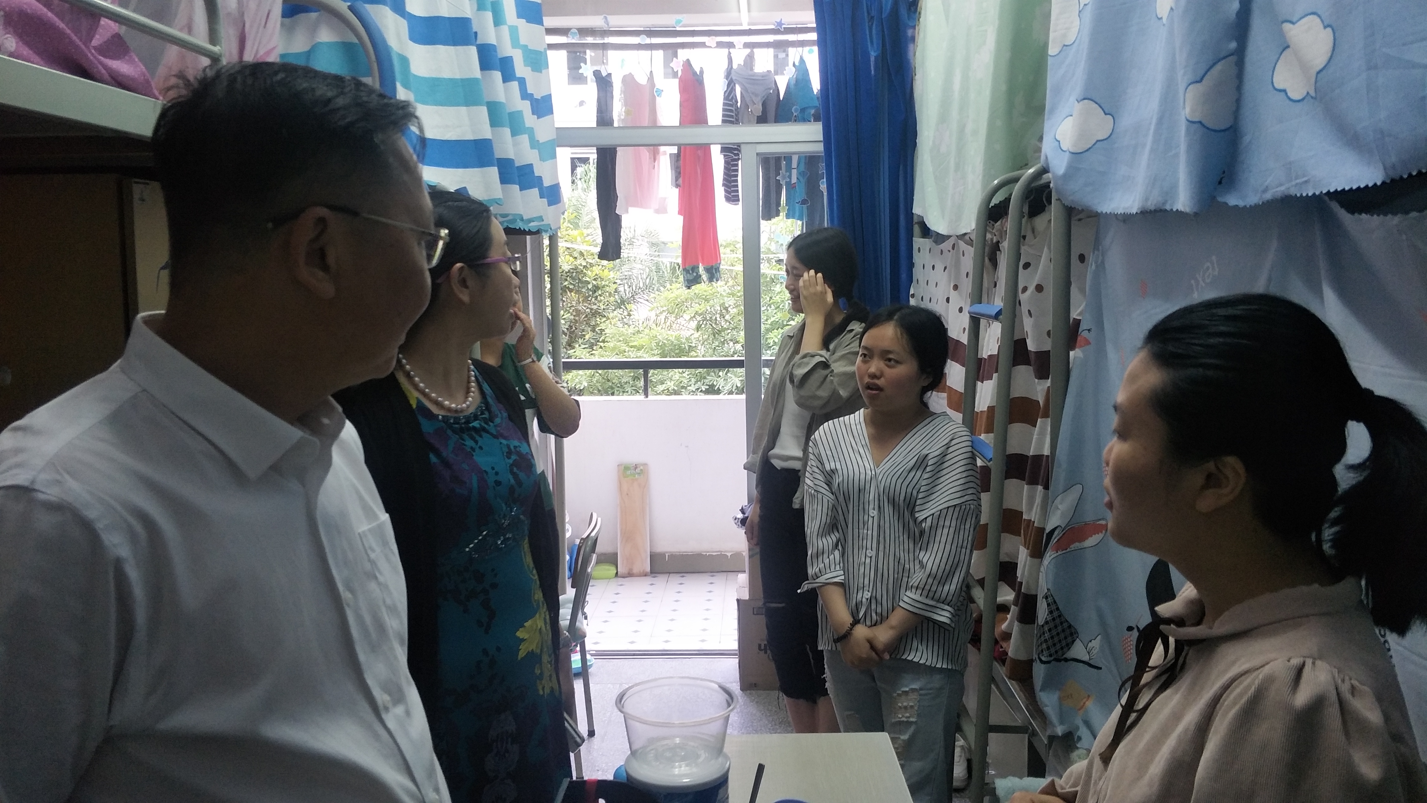 曾書記、黃副院長仔細(xì)察看了同學(xué)們的住宿條件,并與同學(xué)們進(jìn)行了親切的交談。詢問了同學(xué)們在校期間的學(xué)習(xí)、生活、宿舍衛(wèi)生安全等狀況,深入了解了同學(xué)們目前面臨的一些困難,并對學(xué)生的生活、學(xué)習(xí)等方面的問題給出了一些指導(dǎo)性建議,提醒學(xué)生注意用電安全和人身安全,防詐騙傳銷等問題,并對同學(xué)們各種疑問進(jìn)行詳盡的解答,和藹可親的態(tài)度感染身邊每一人。同學(xué)們也熱情迎接,積極響應(yīng),寢室里洋溢著師生間融融情誼。