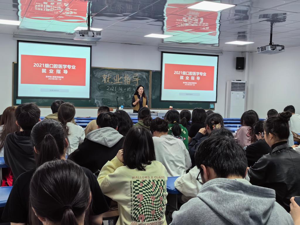 針對口腔醫(yī)學專業(yè)學生如何選擇合適自己的就業(yè)崗位以及明年執(zhí)業(yè)助理醫(yī)師報考的問題,口腔醫(yī)學教研室于2024年4月11日召開2021級畢業(yè)生就業(yè)動員大會??谇会t(yī)學教研室全體教師及在福州地區(qū)實習的80多名口腔醫(yī)學專業(yè)畢業(yè)生參加。